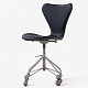 AJ 3117 - 'Syver'-kontorstol i sort læder på original patineret stel. Mærket fra producent.