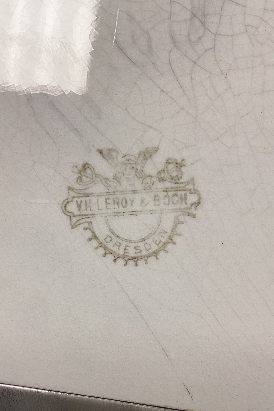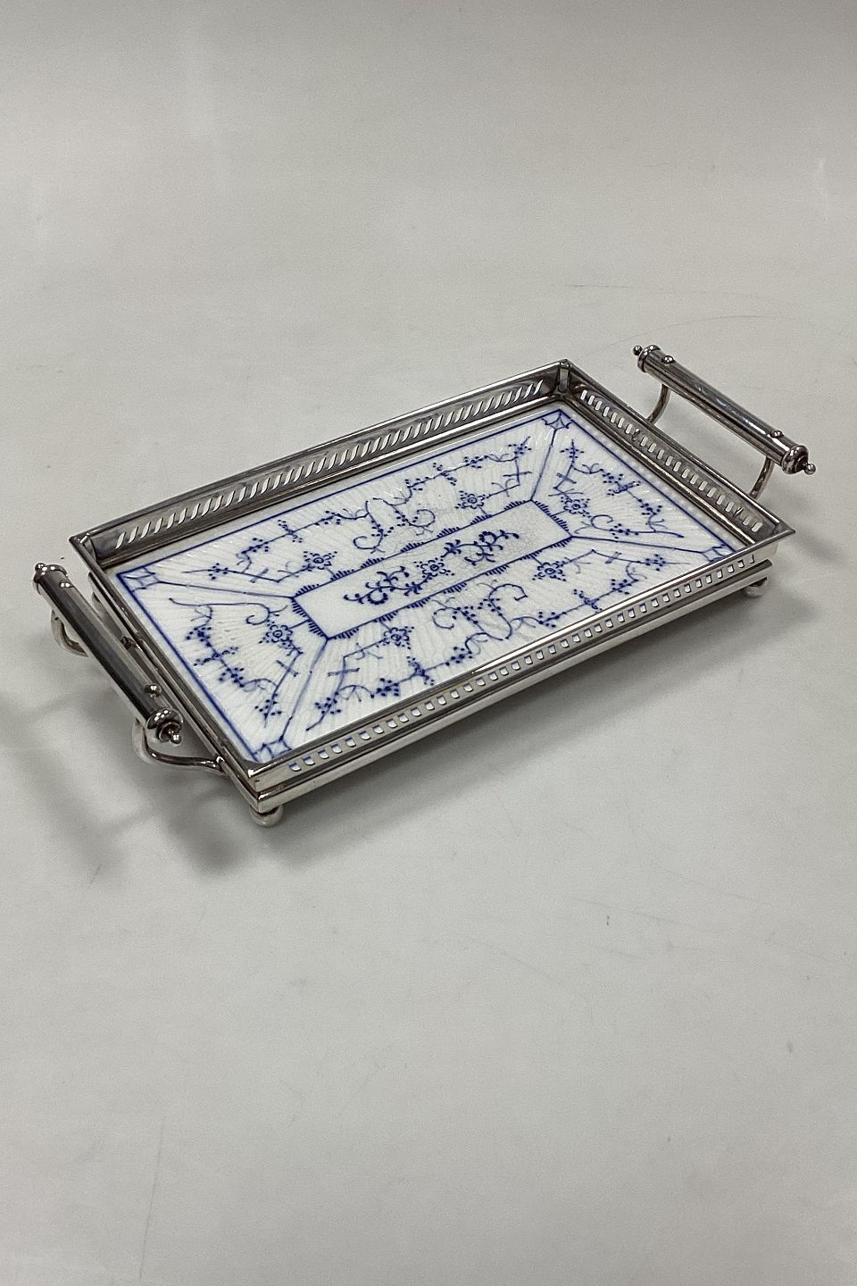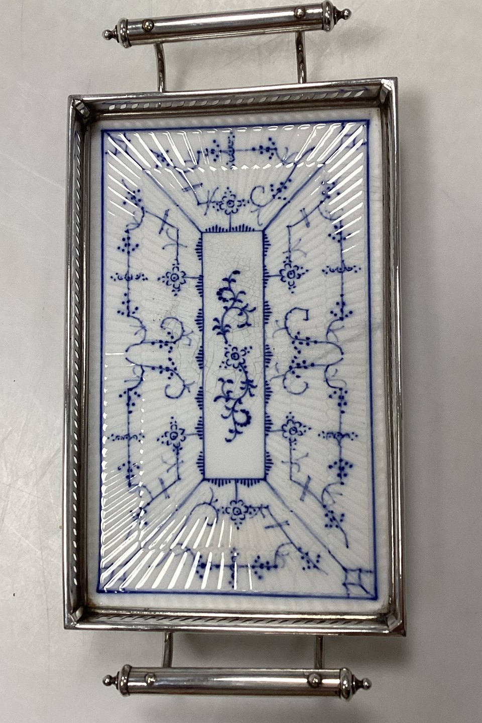Description: Villeroy and Boch Blue Fluted Serving Tray, with metal frame and handle
