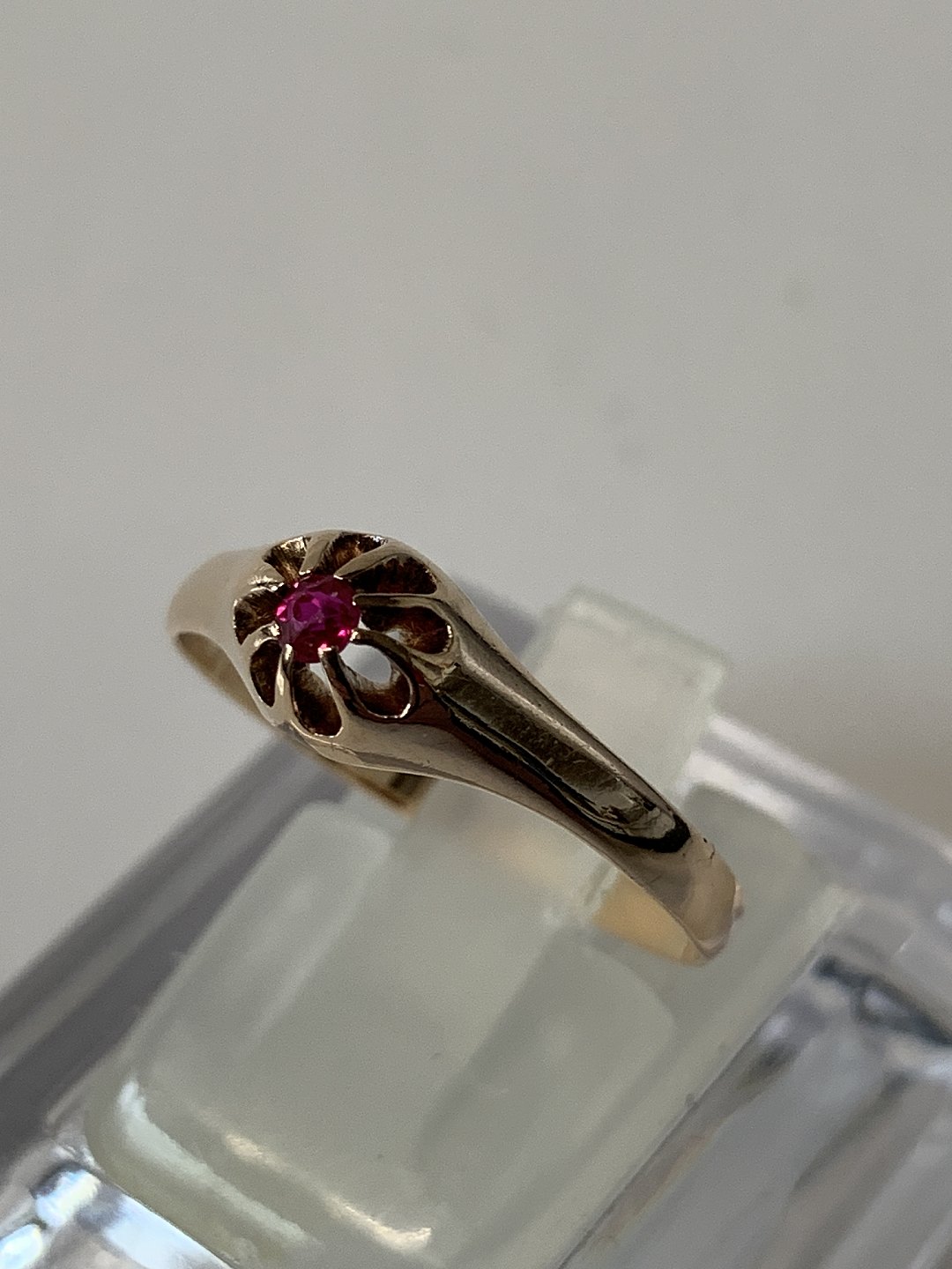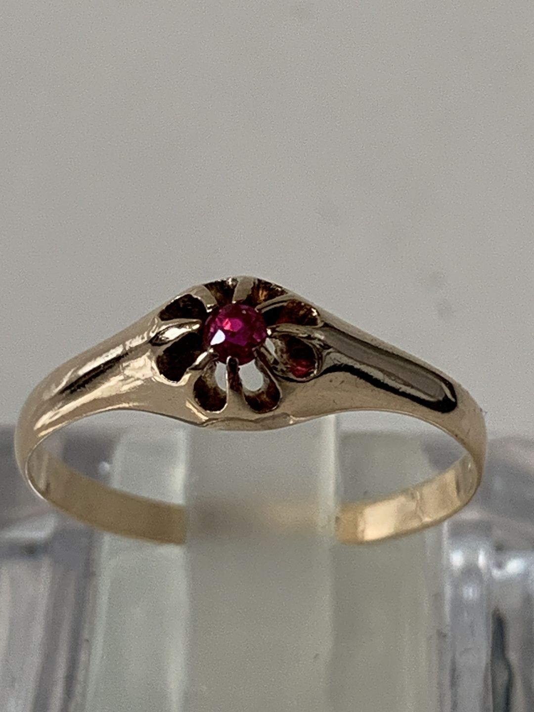 Description: Beautiful and elegant gold ring with a red stone in 14 carat gold, the ring is very useful for everyday use.