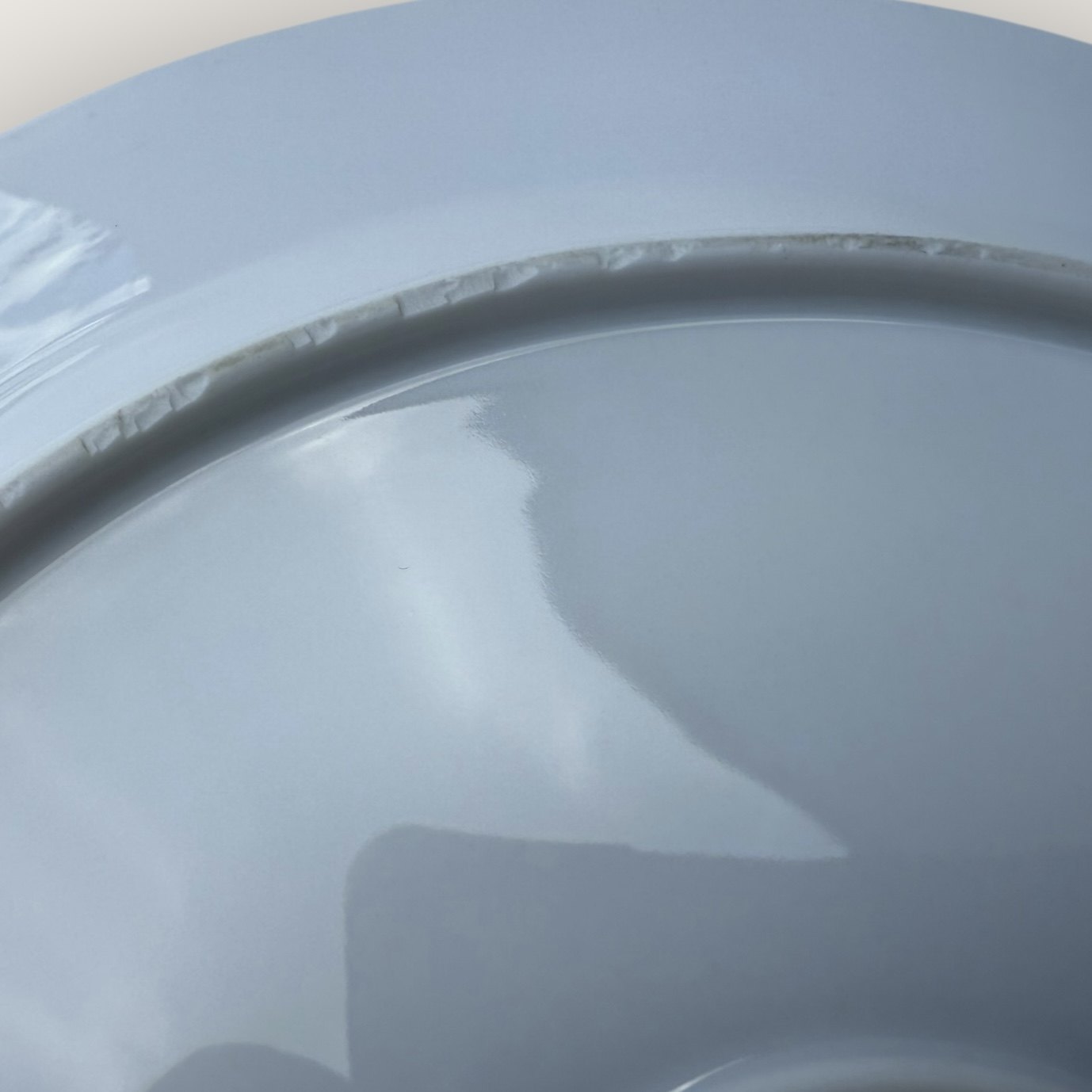 Description: Royal Copenhagen, Hvid kantet / White edged without decoration, Round serving dish #373, 33cm in diameter, 3rd grade, slight unevenness on the lower edge (see photo) otherwise in good condition.