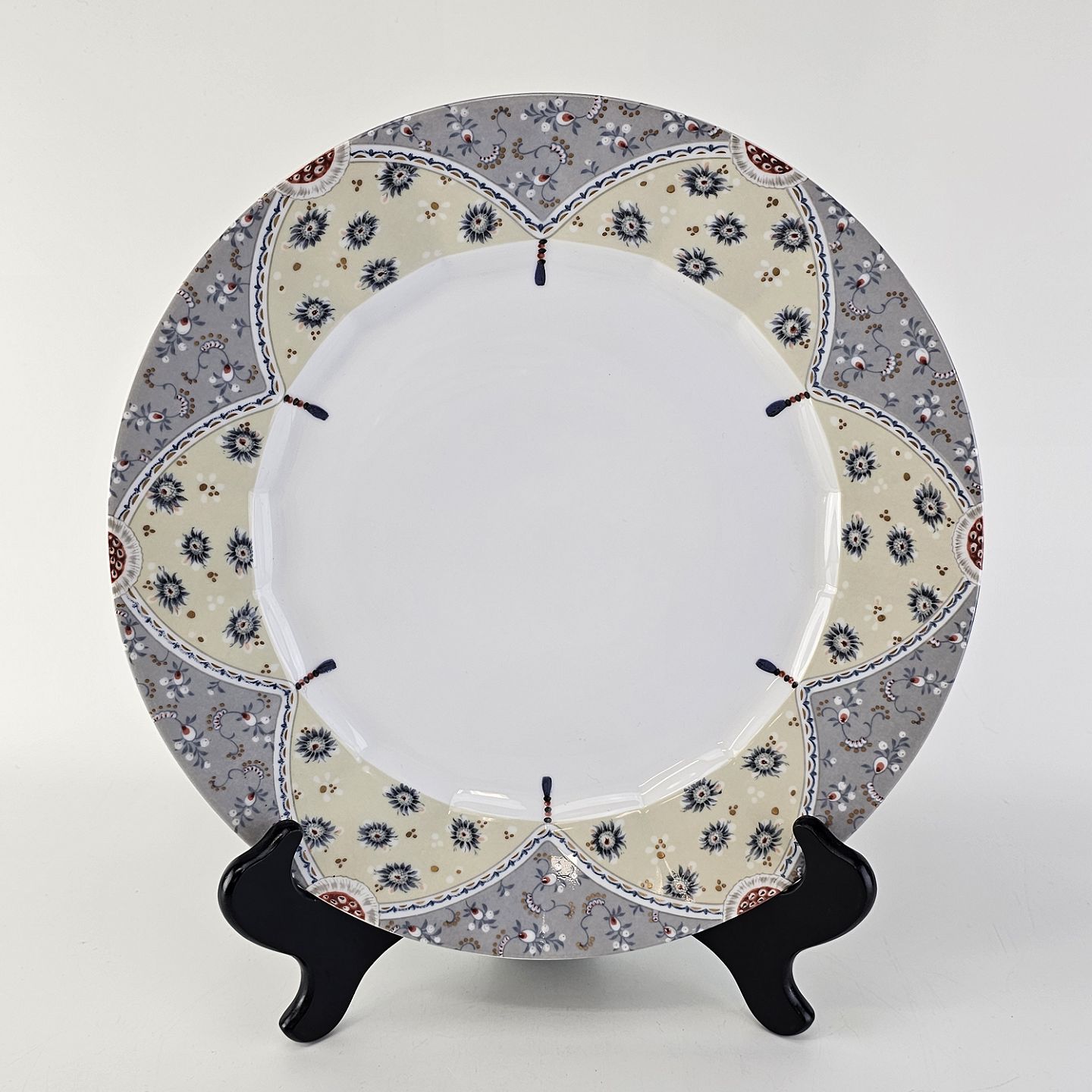 Beskrivelse: Middagstallerken i porcelæn med blå dekoration fra stellet Fairytale