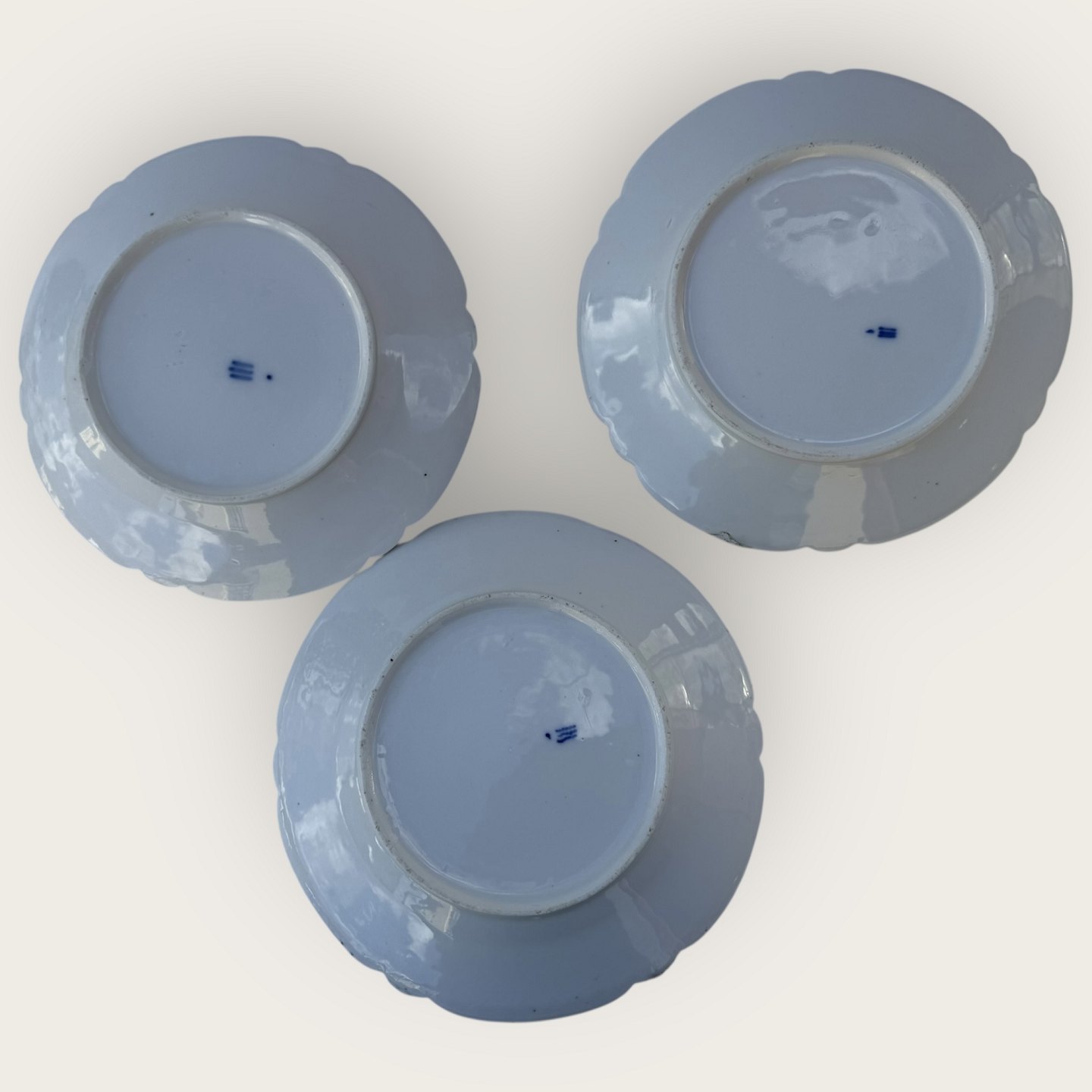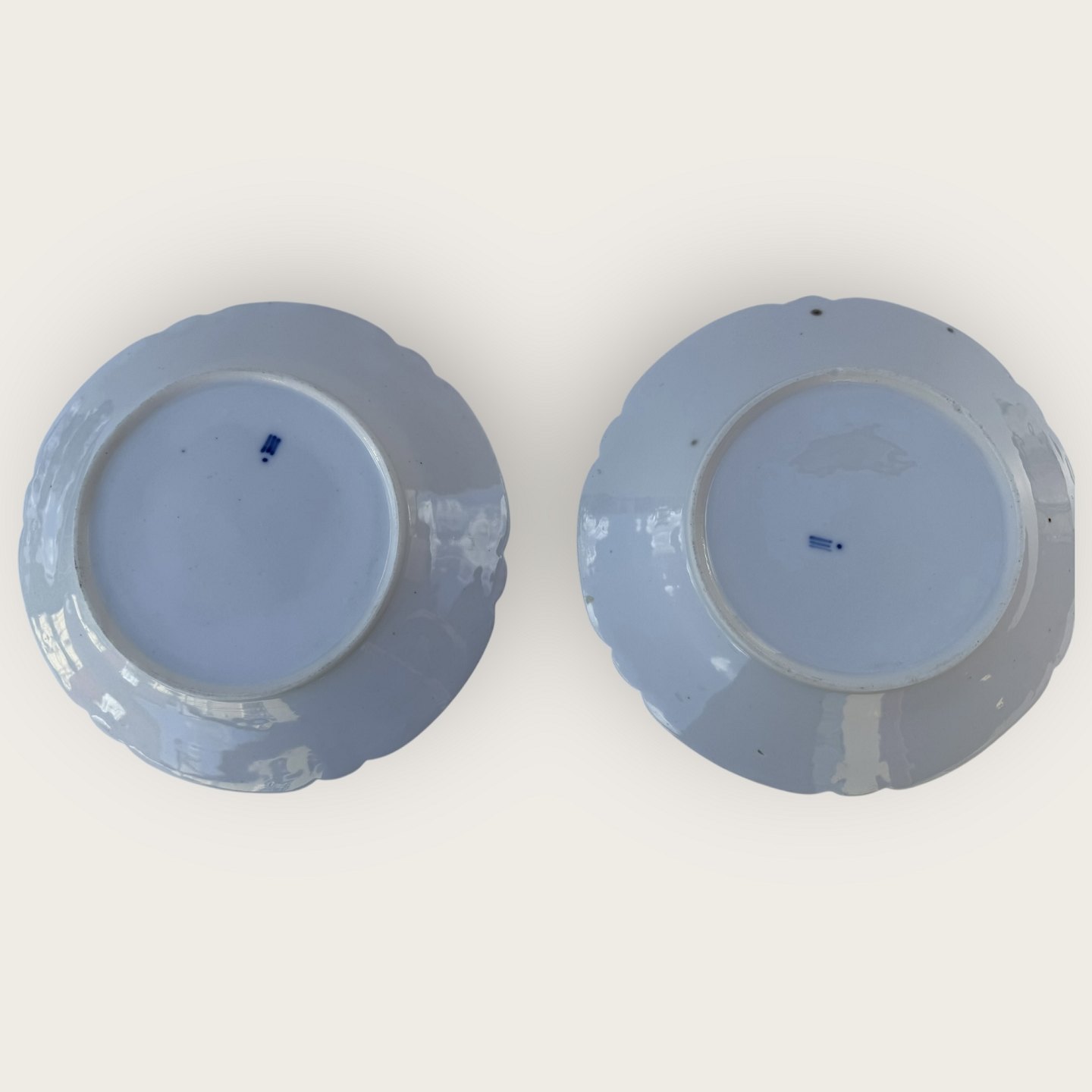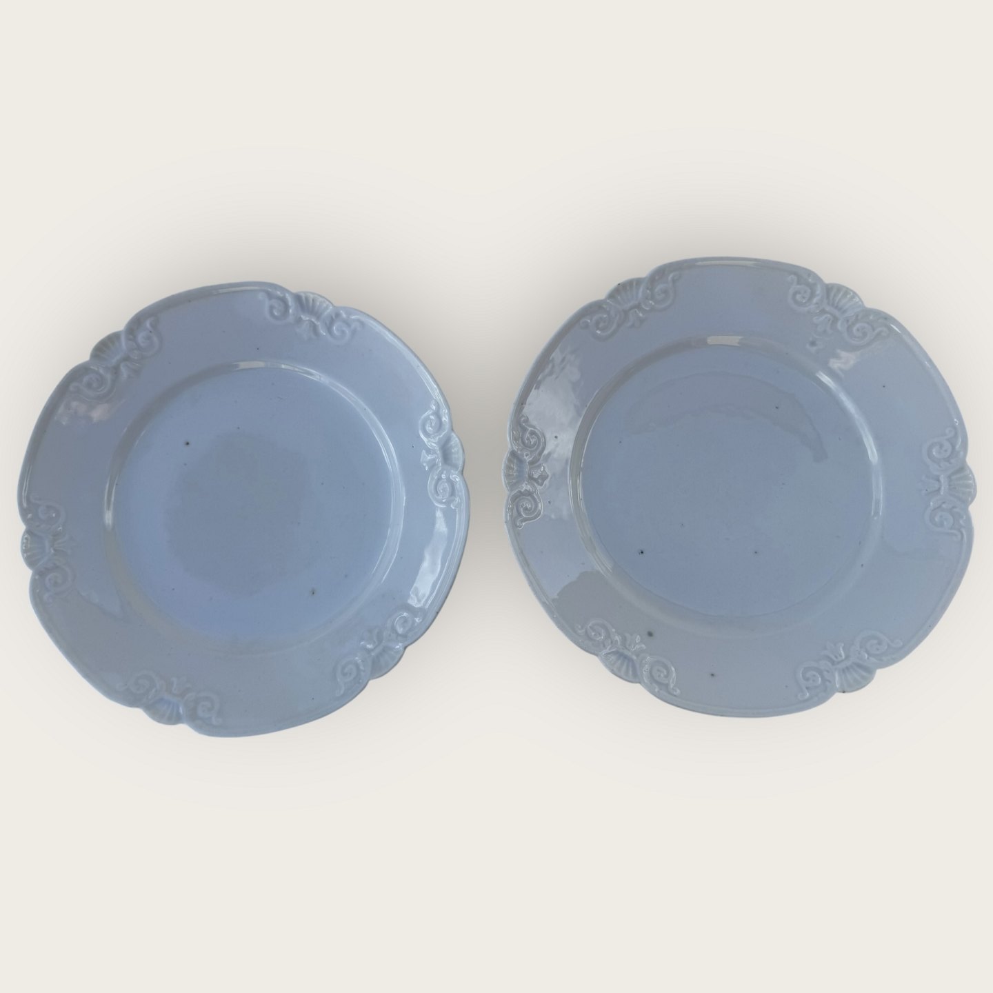 Description: Royal Copenhagen, Rococo white / Rokoko hvid, flat plate, 19 cm in diameter, 2 pcs. in fine slightly patinated condition, we also have 3 pcs. with defects/repairs for 125kr each (see last 2 photos)