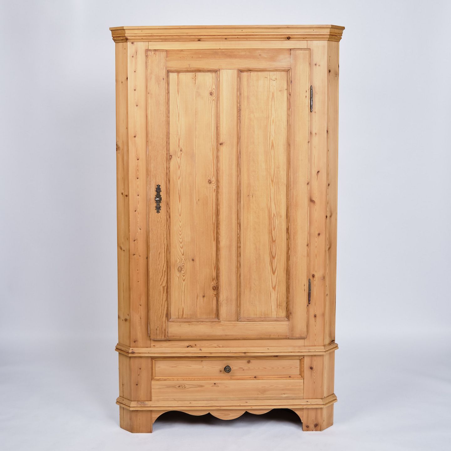 Antikt Hjørneskab - Massivt Fyrtræ - Messing Beslag - 1880erne