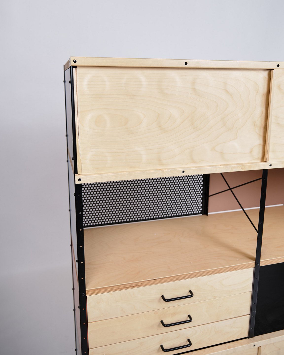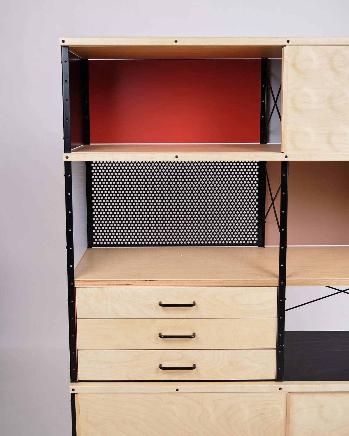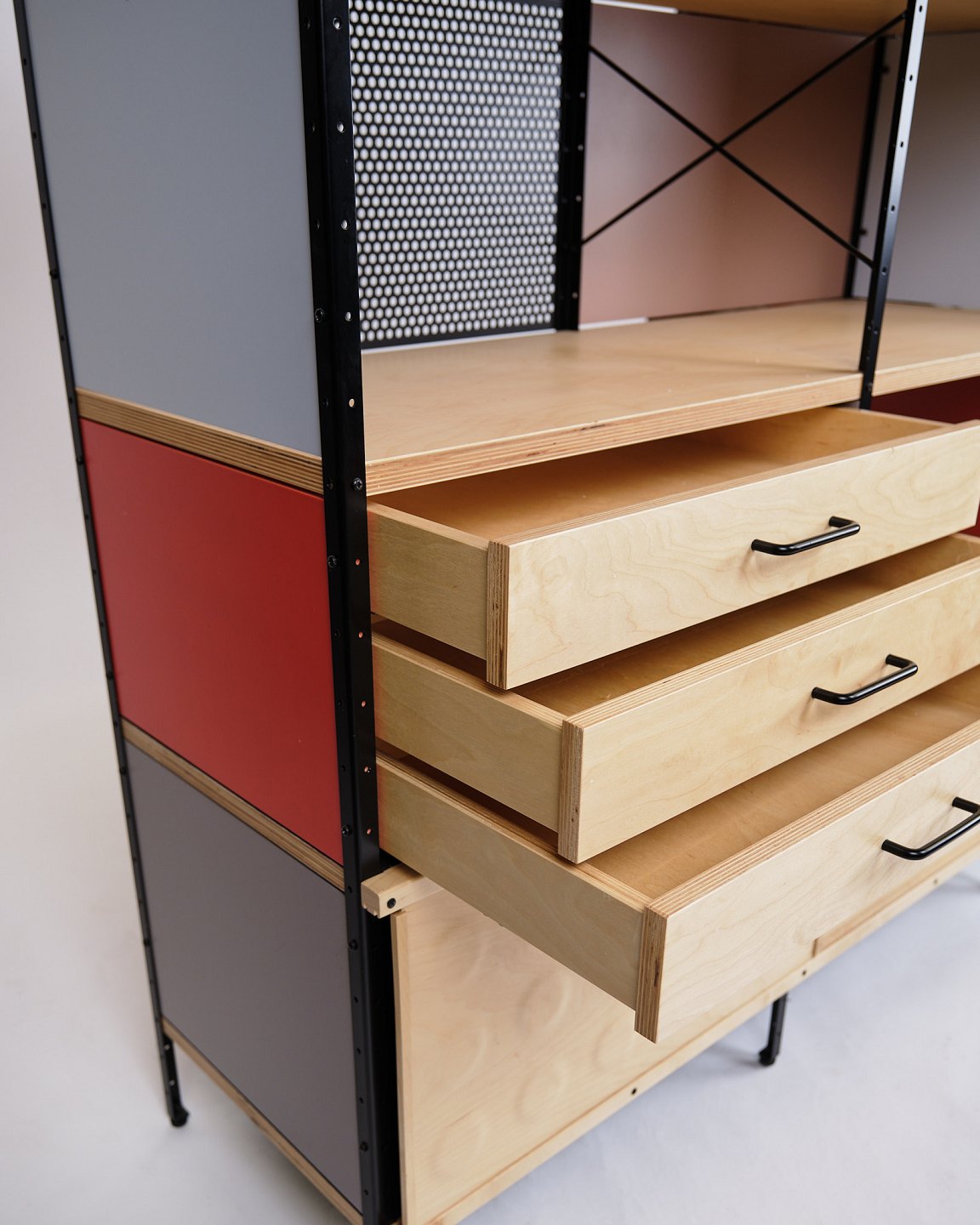 Beskrivelse: ESU bogreol designet af Charles og Ray Eames i 1949 og produceret af Vitra. Reolen er udført i ahorn og birketræ med et grafisk, modulært udtryk, som kombinerer funktionalitet og tidløs modernisme.