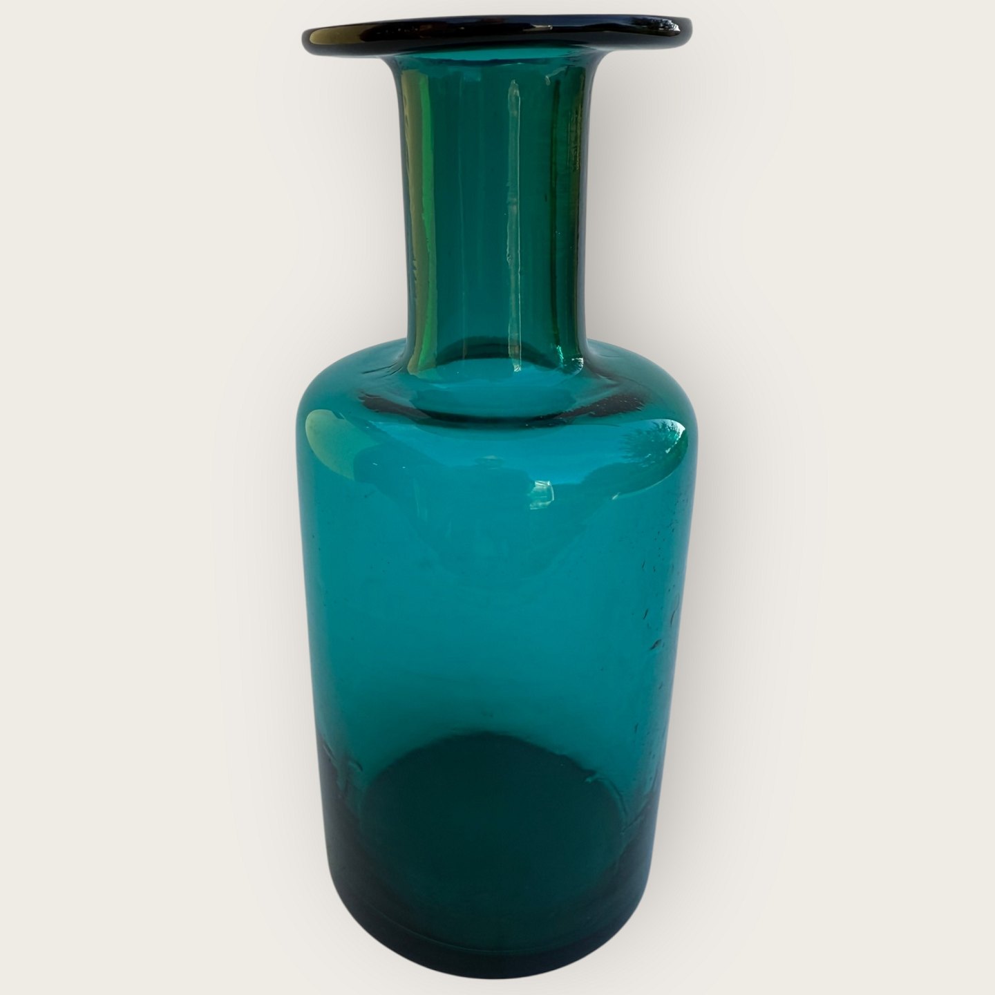 Beskrivelse: Grønblå vase, usigneret, højde 17cm, diameter 7,3cm, fin stand