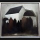 "The Church in Winter" Oil painting on canvas, mounted in a wide silver frame.