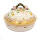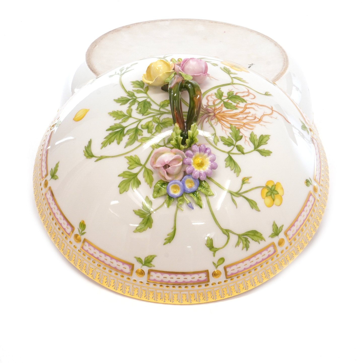Beskrivelse: Royal Copenhagen Flora Danica rund terrin / lågskål #3568