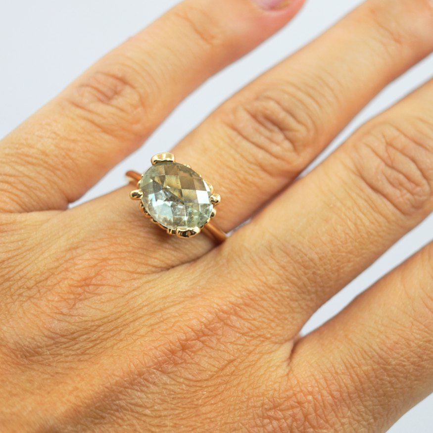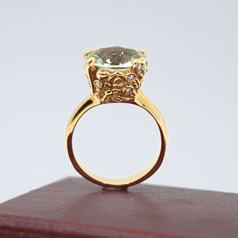 Description: A ring in 14k gold set with a blue topaz. Ring size 52-53.