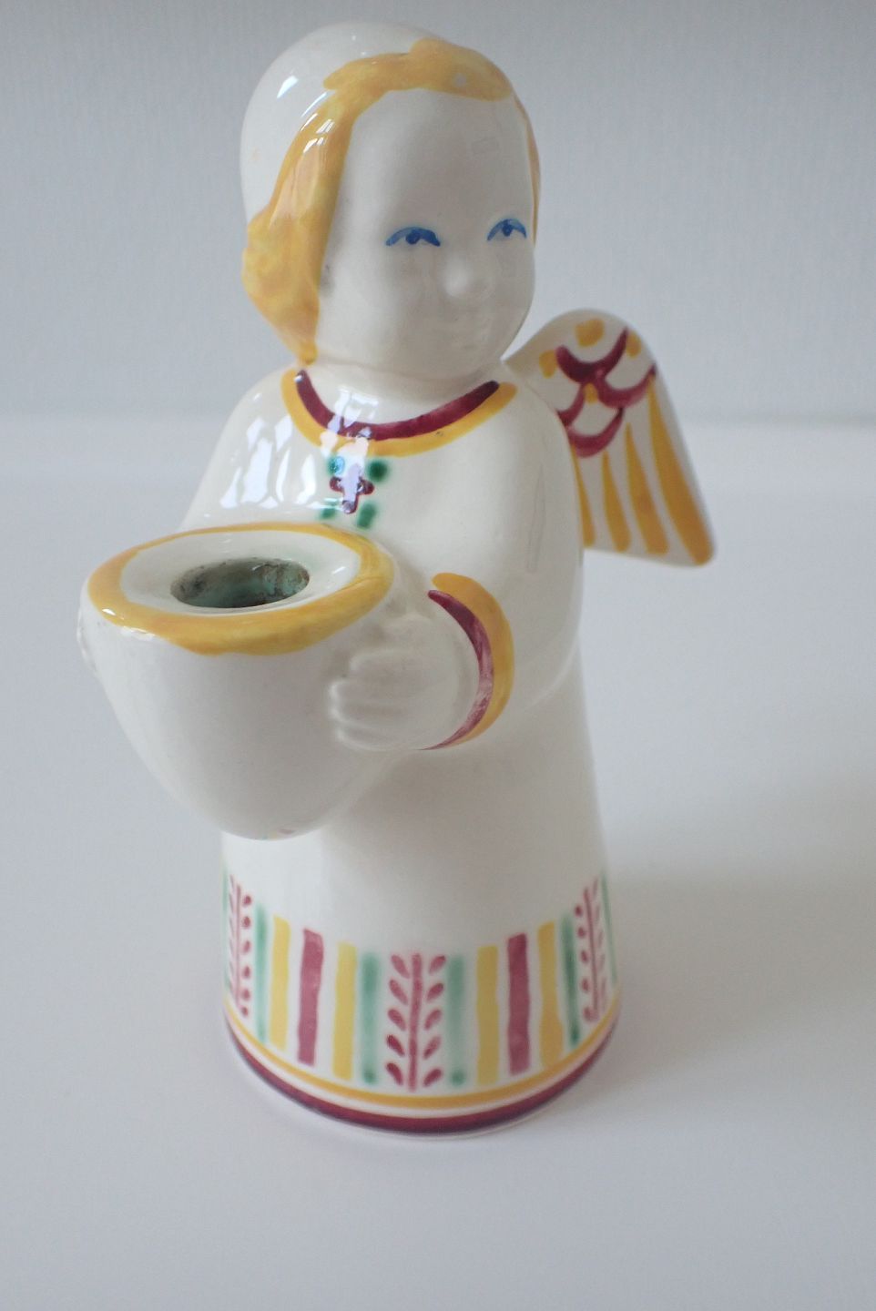 Beskrivelse: Aluminia juleengel til lys -design nr. 2350 designet af Nils Thorsen i 1944.Stempel ca. 1945 - fin stand, uden krakelering. Højde: 13 cm.