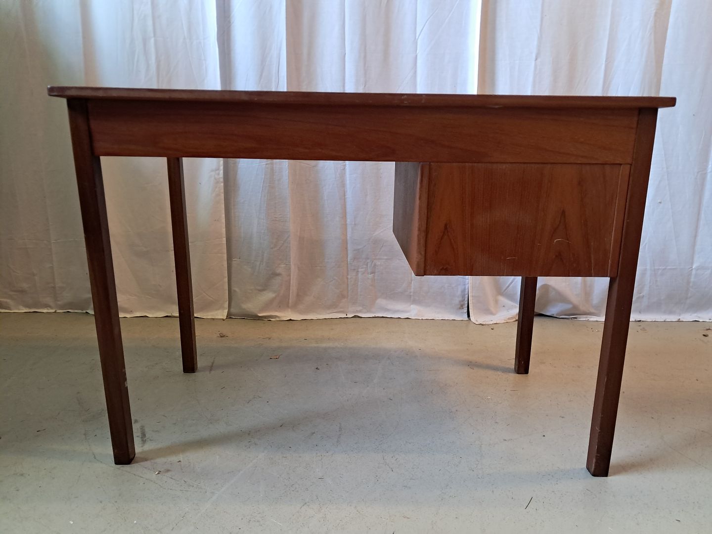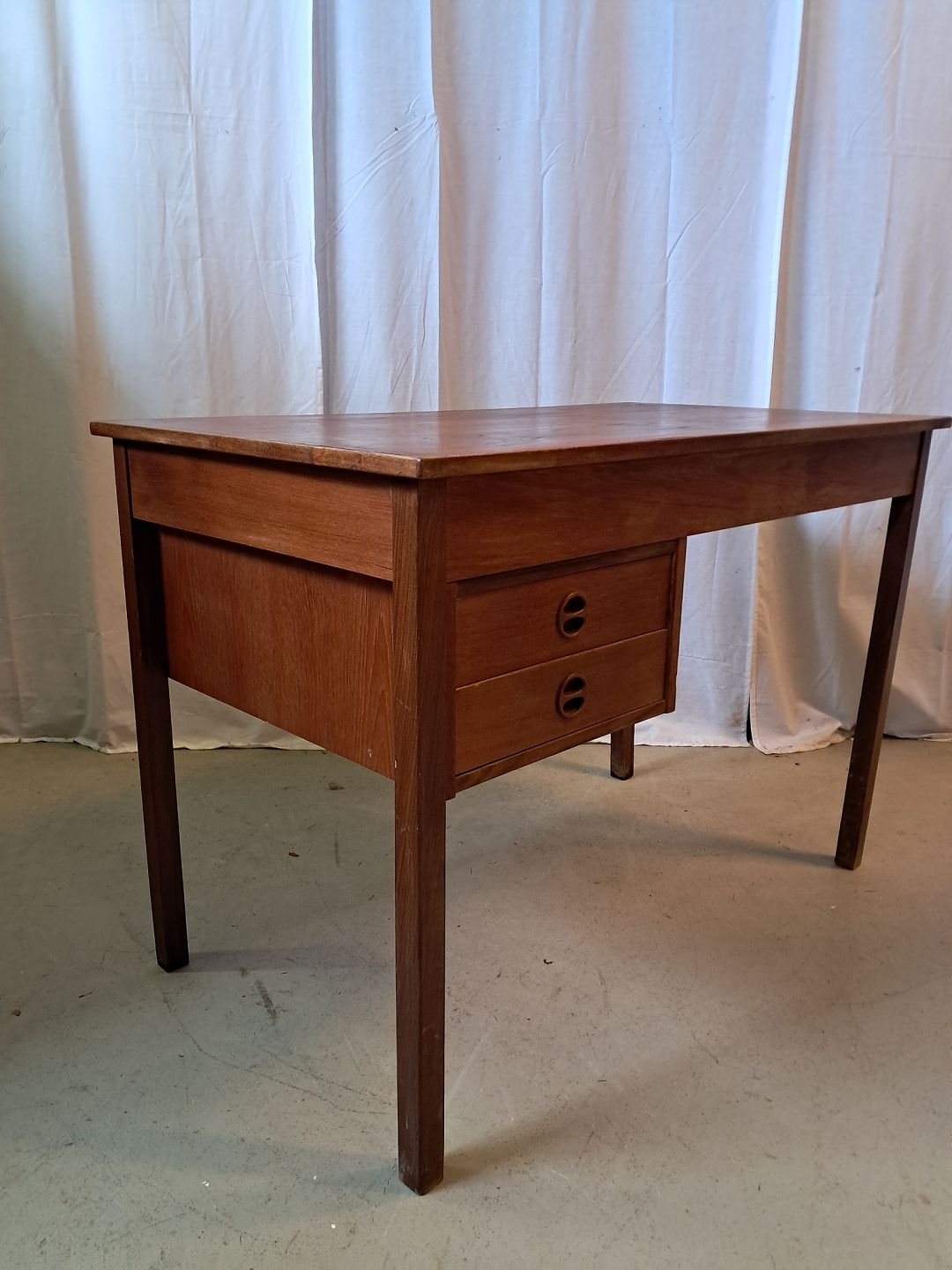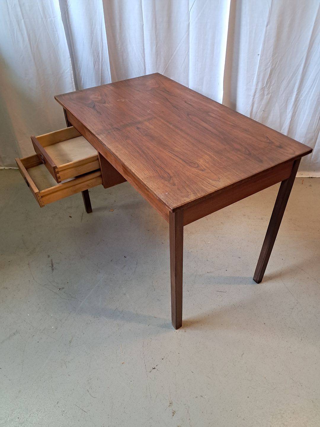 Beskrivelse: Skrivebord i fineret teaktræ, fra 1960erne.