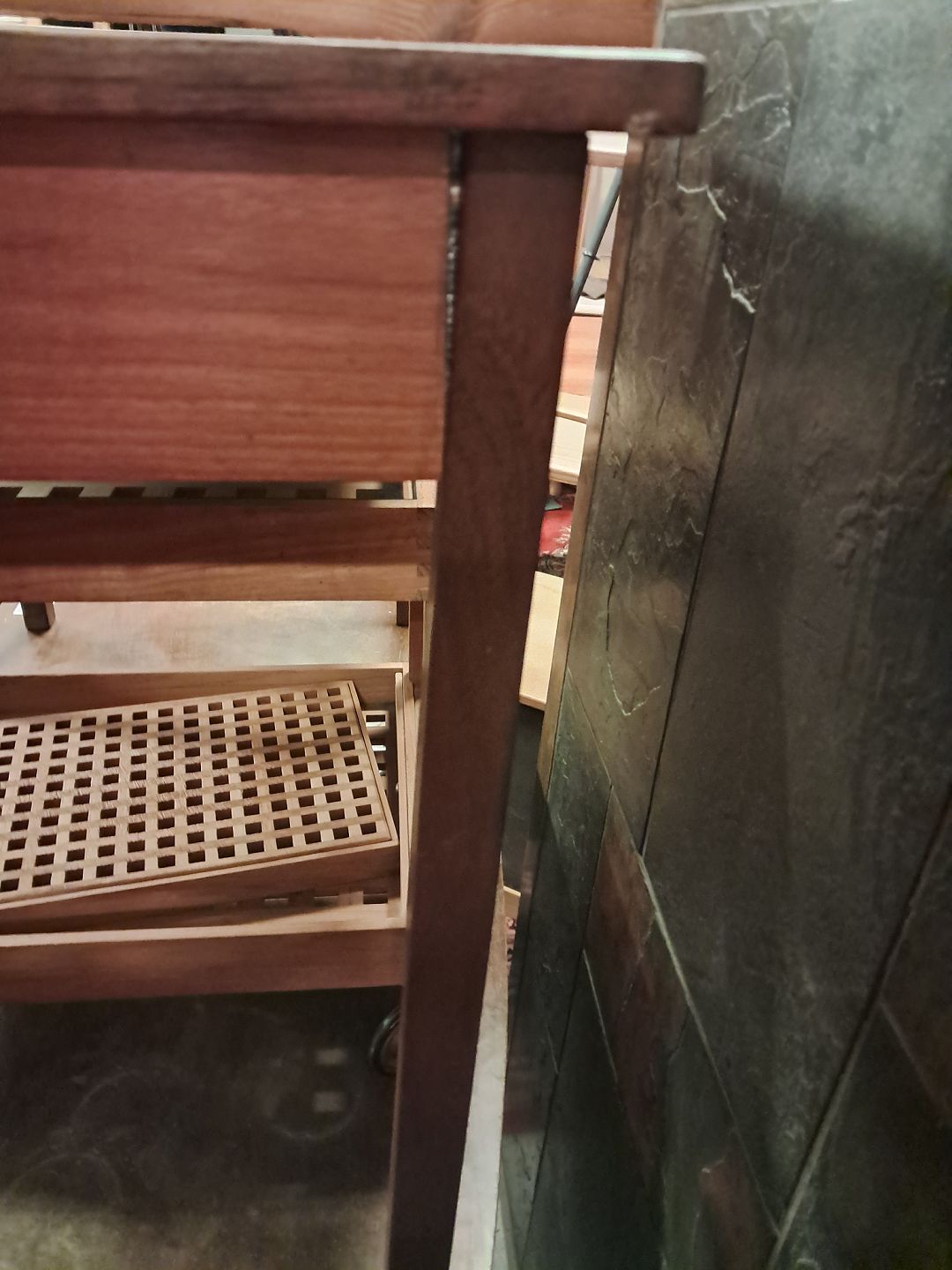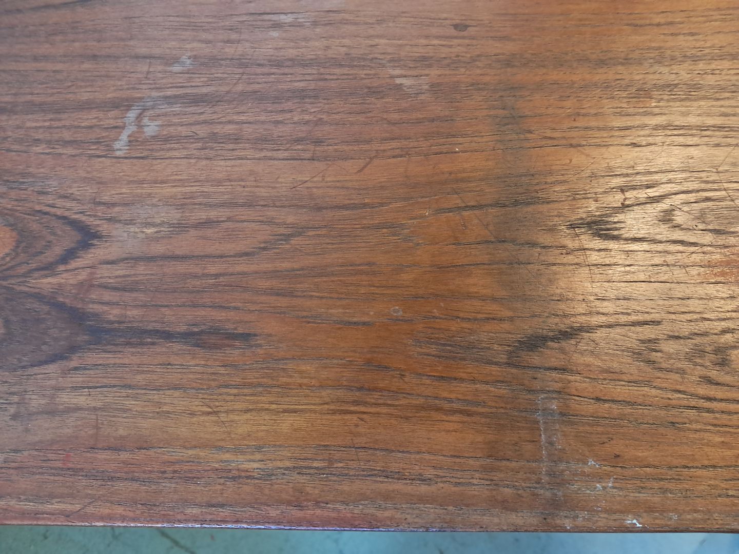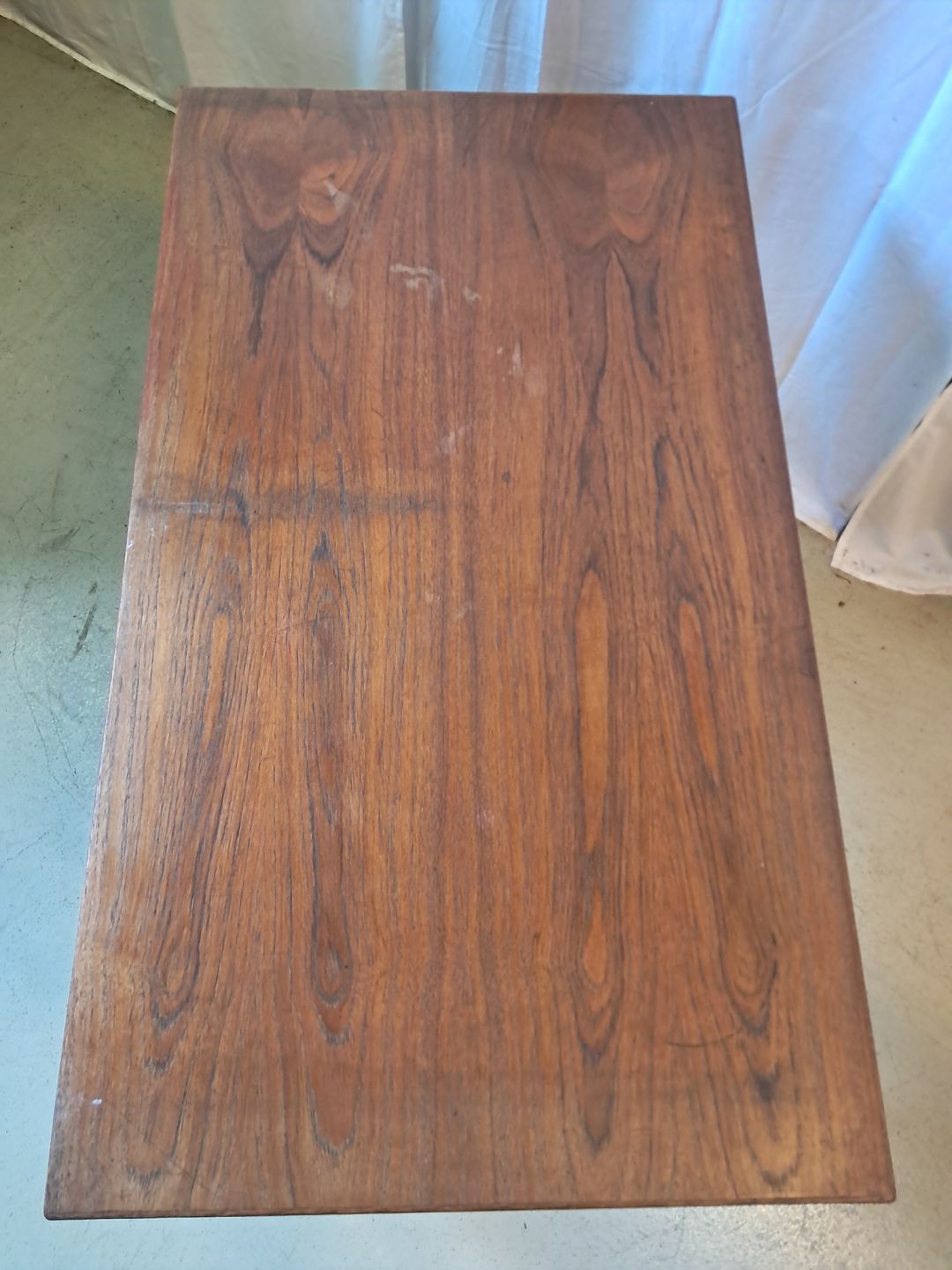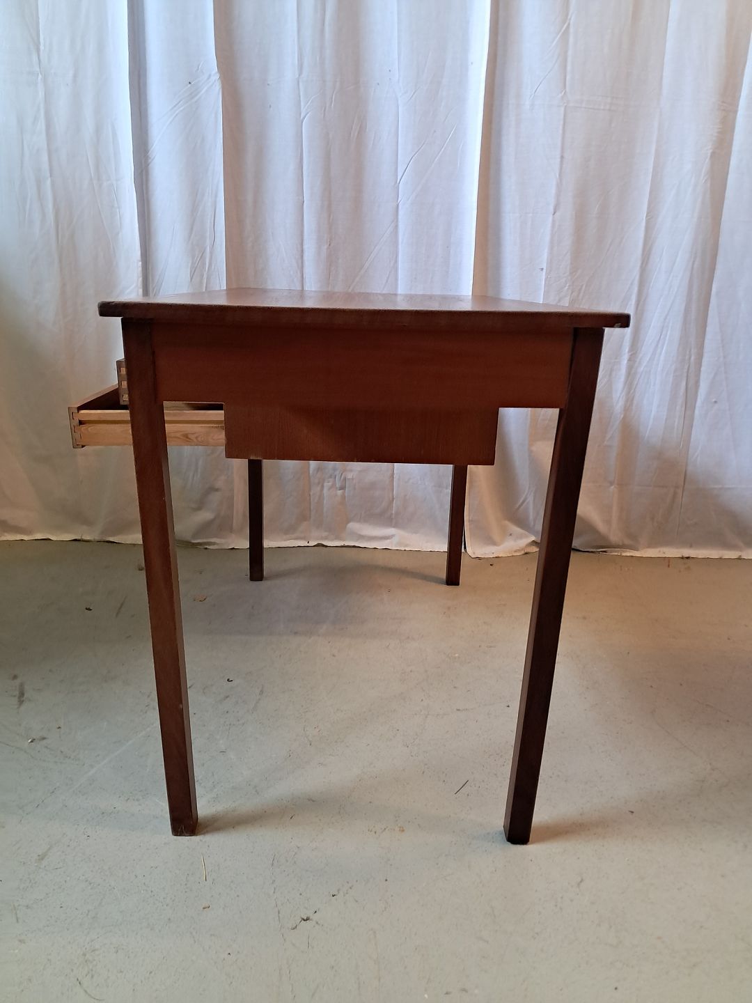 Beskrivelse: Skrivebord i fineret teaktræ, fra 1960erne.
