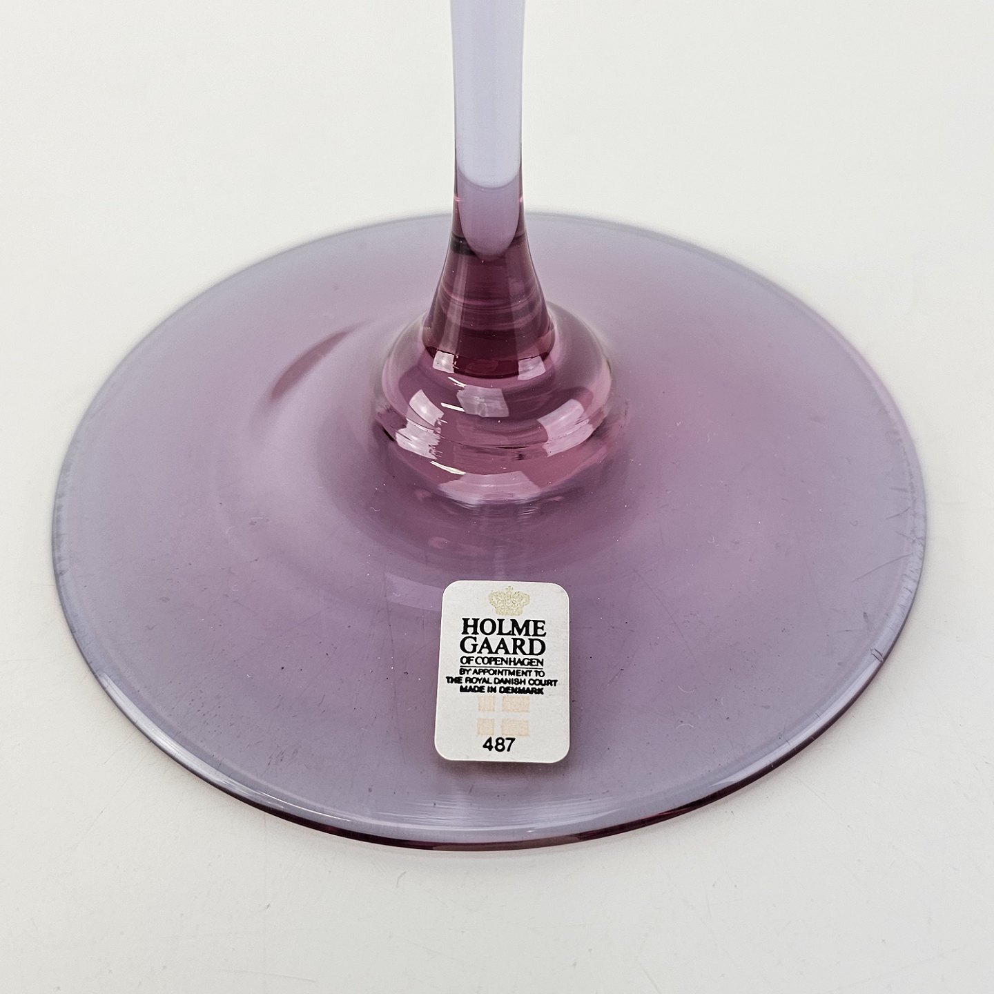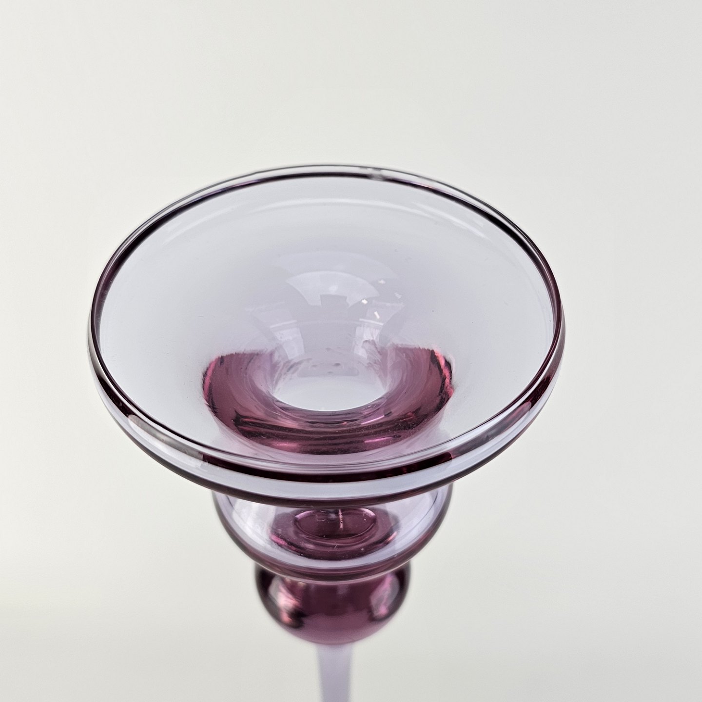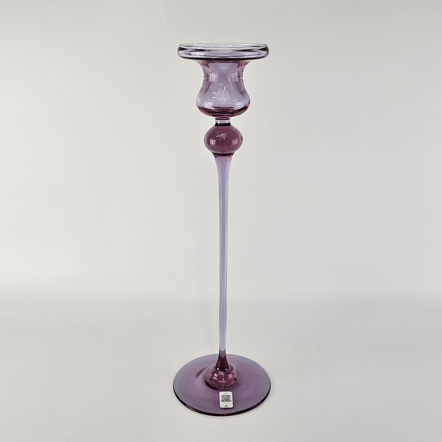 Beskrivelse: Lysestage i klart lilla glas. Model Cassiopeia