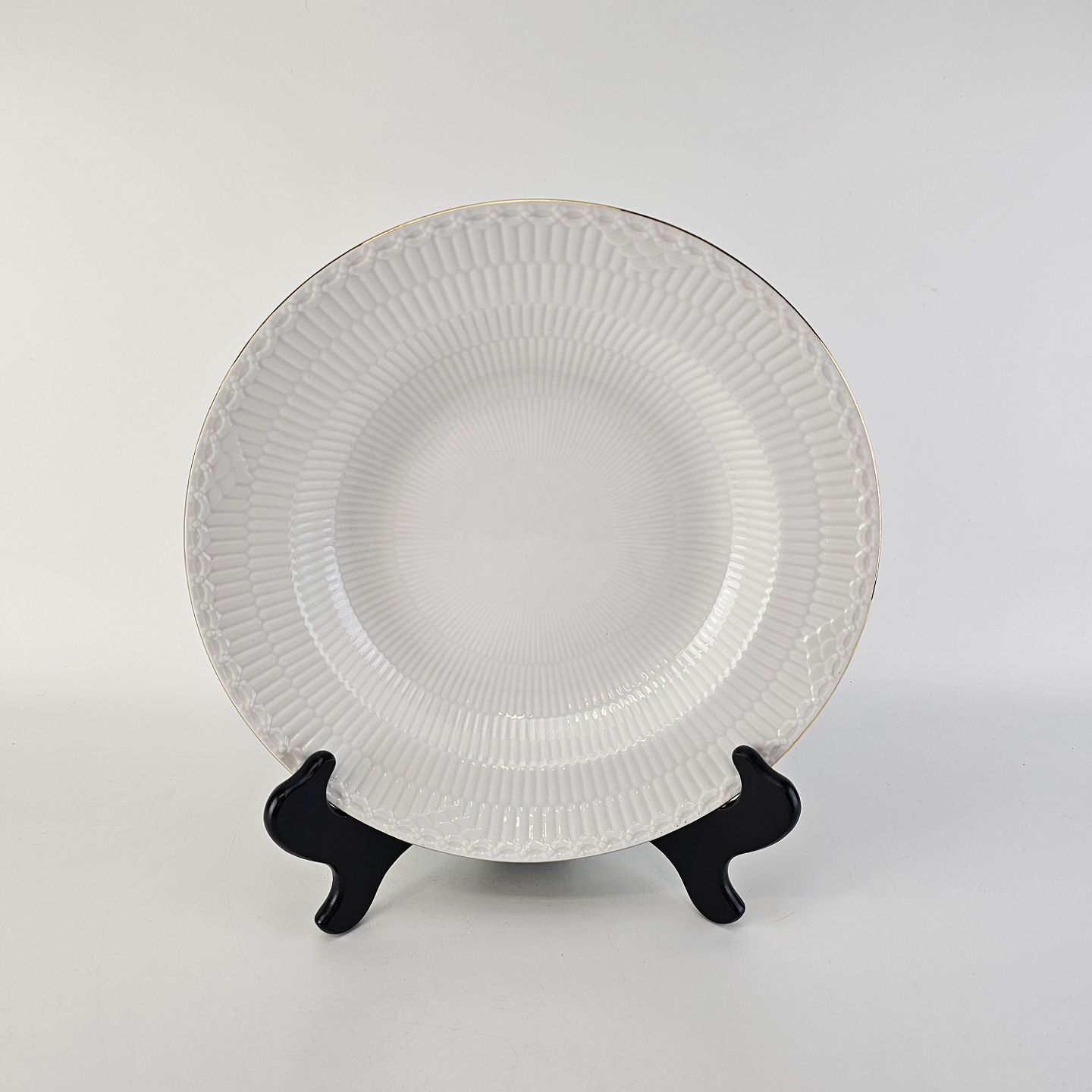 Beskrivelse: Stor dyb tallerken i porcelæn fra stellet Hvid Halvblonde