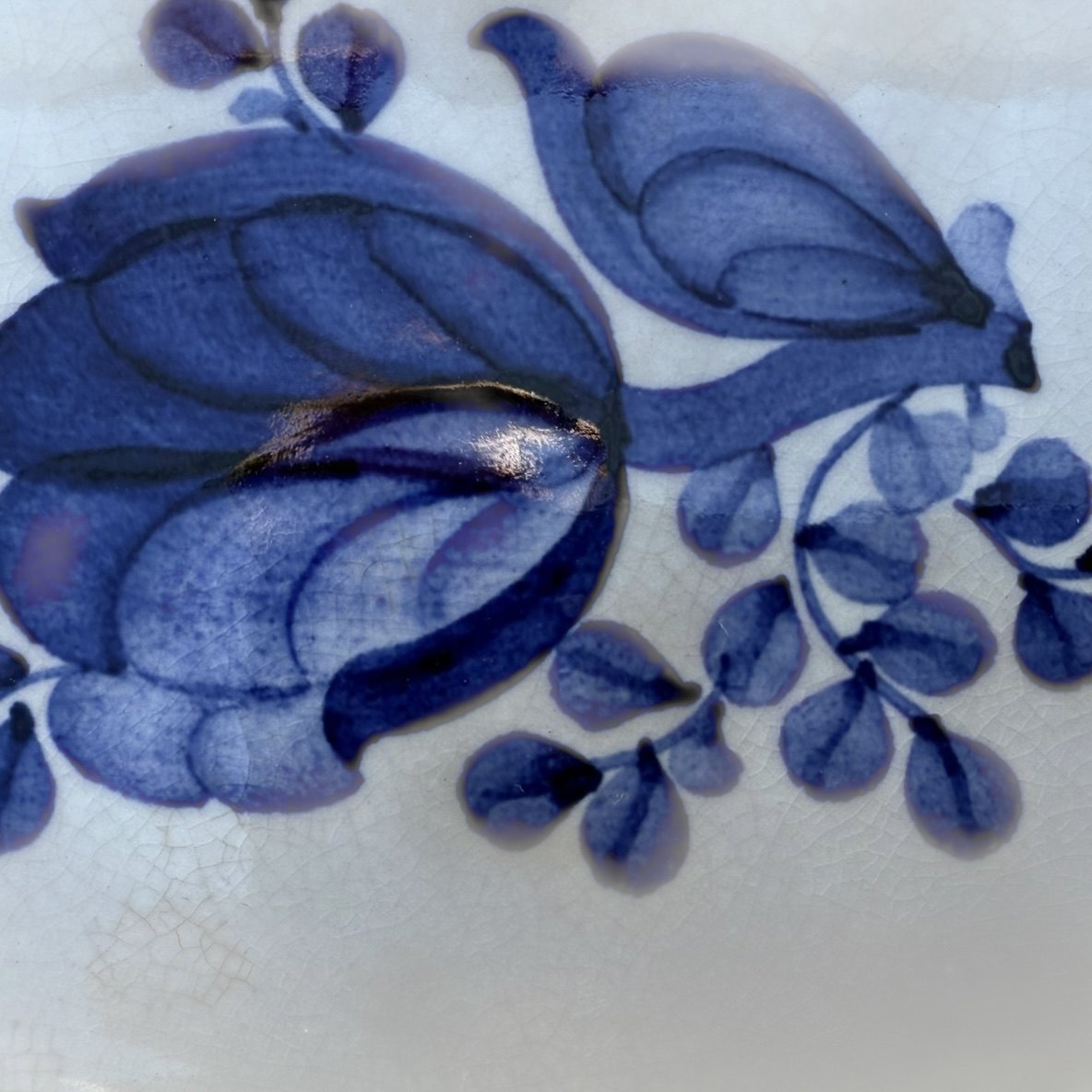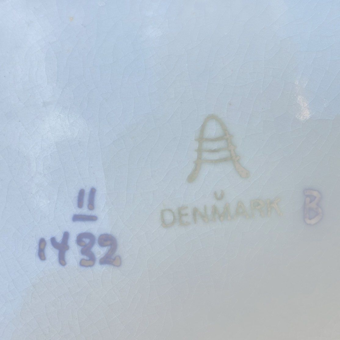 Description: Royal Copenhagen, Tranquebar, Cabaret-Schale Nr. 11/1432, 27 cm Durchmesser, 10 cm hoch, Design Christian Joachim *Einige sehr leichte Risse unter der Glasur, ansonsten in gutem Zustand*