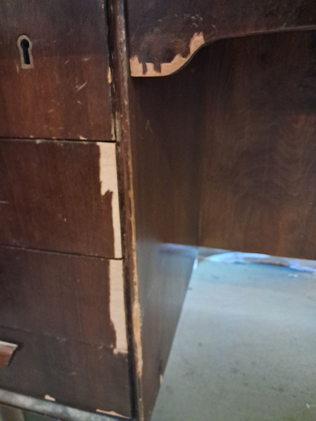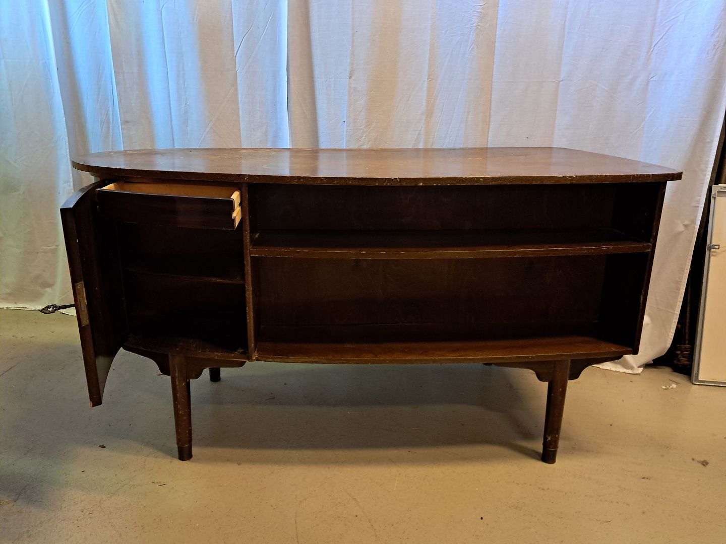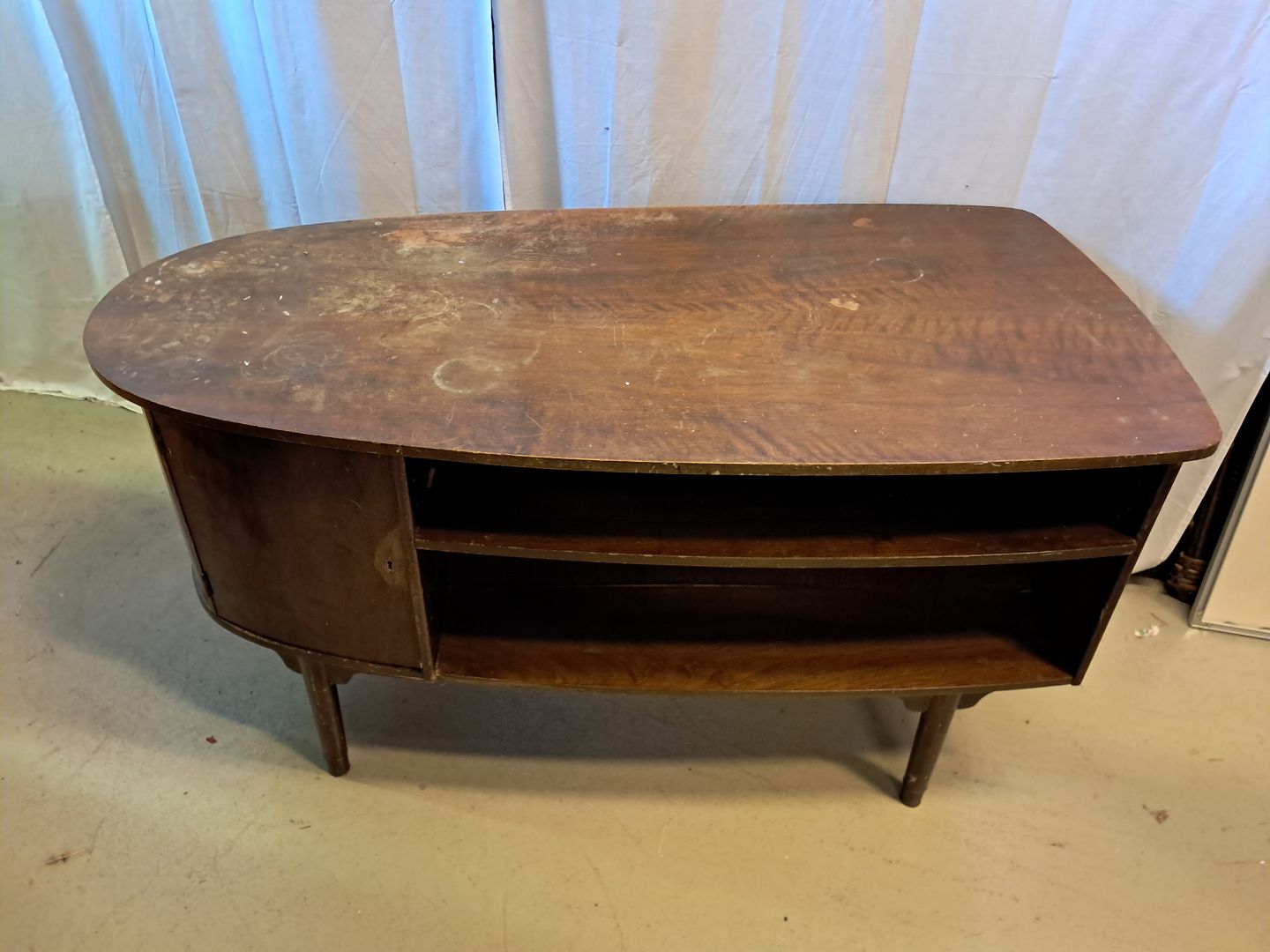 Beskrivelse: Skrivebord i fineret nødetræ, fra 1960erne.