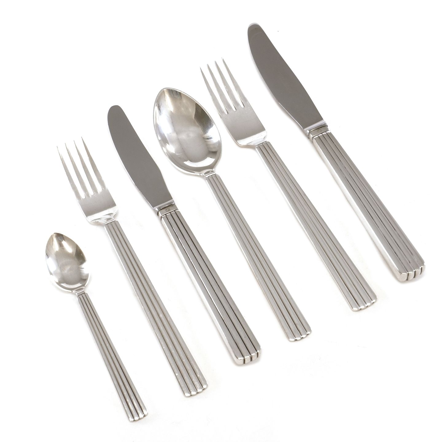 Georg Jensen Bernadotte sølvbestik til 12 personer udført 1962. 72 dele i alt