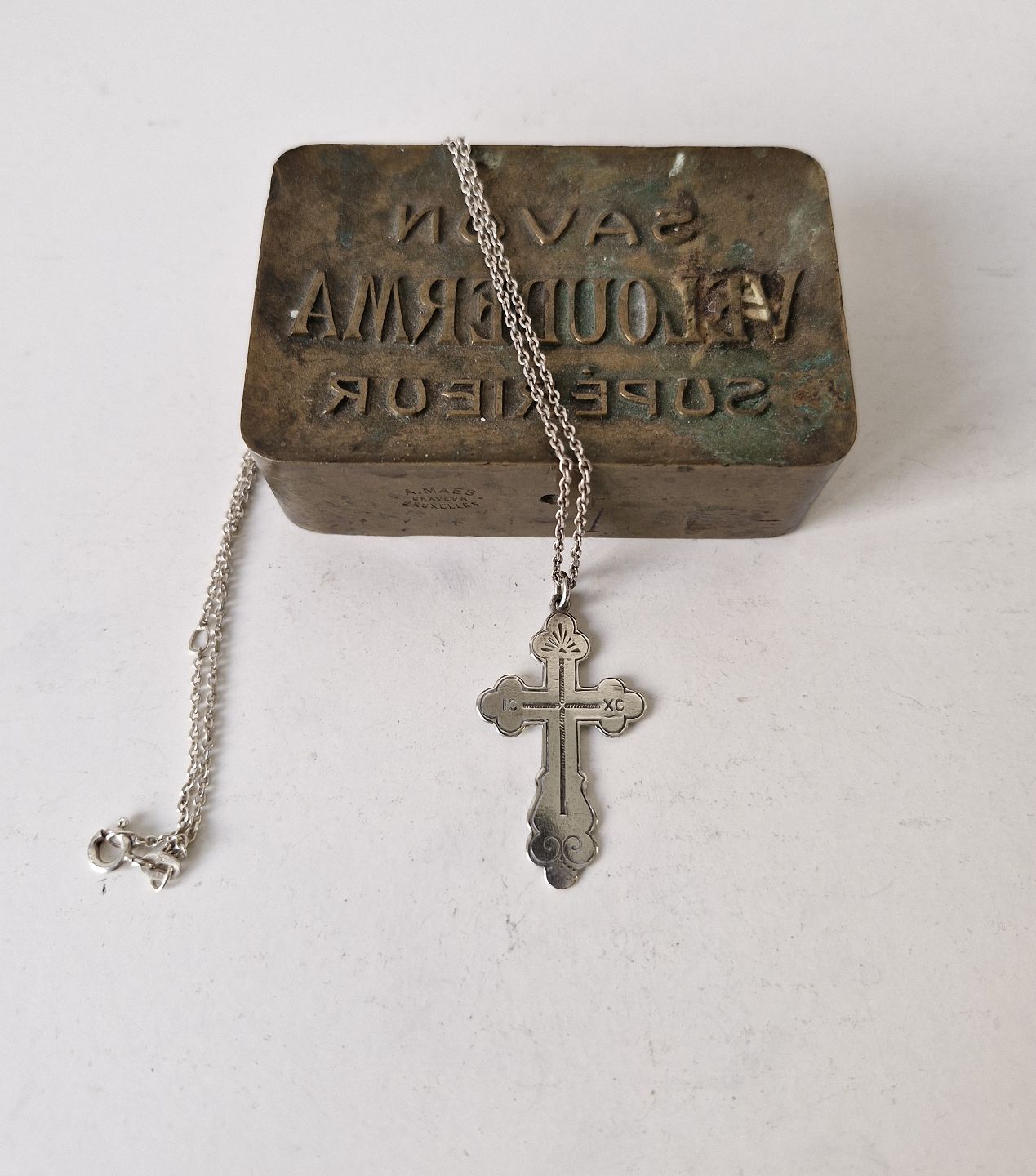 Beskrivelse: Smukt gammelt sølv kors i sølvkæde