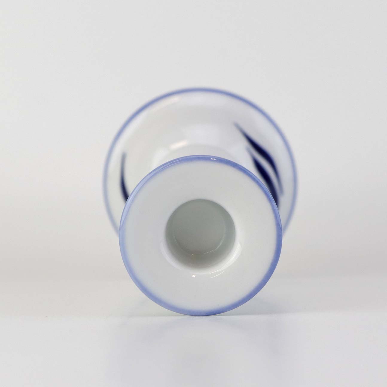 Stel i glat hvidt porcelæn med lyseblå kant og blåt bølget dekoration