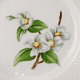 Heimdal er cremefarvet porcelæn i skælform, som dekoreret med jasminblomster, grene og en guldkant.