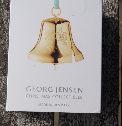 Georg Jensen Denmark Christmas ornaments in gilded brass. Christmas bell from 2016 in original box.