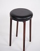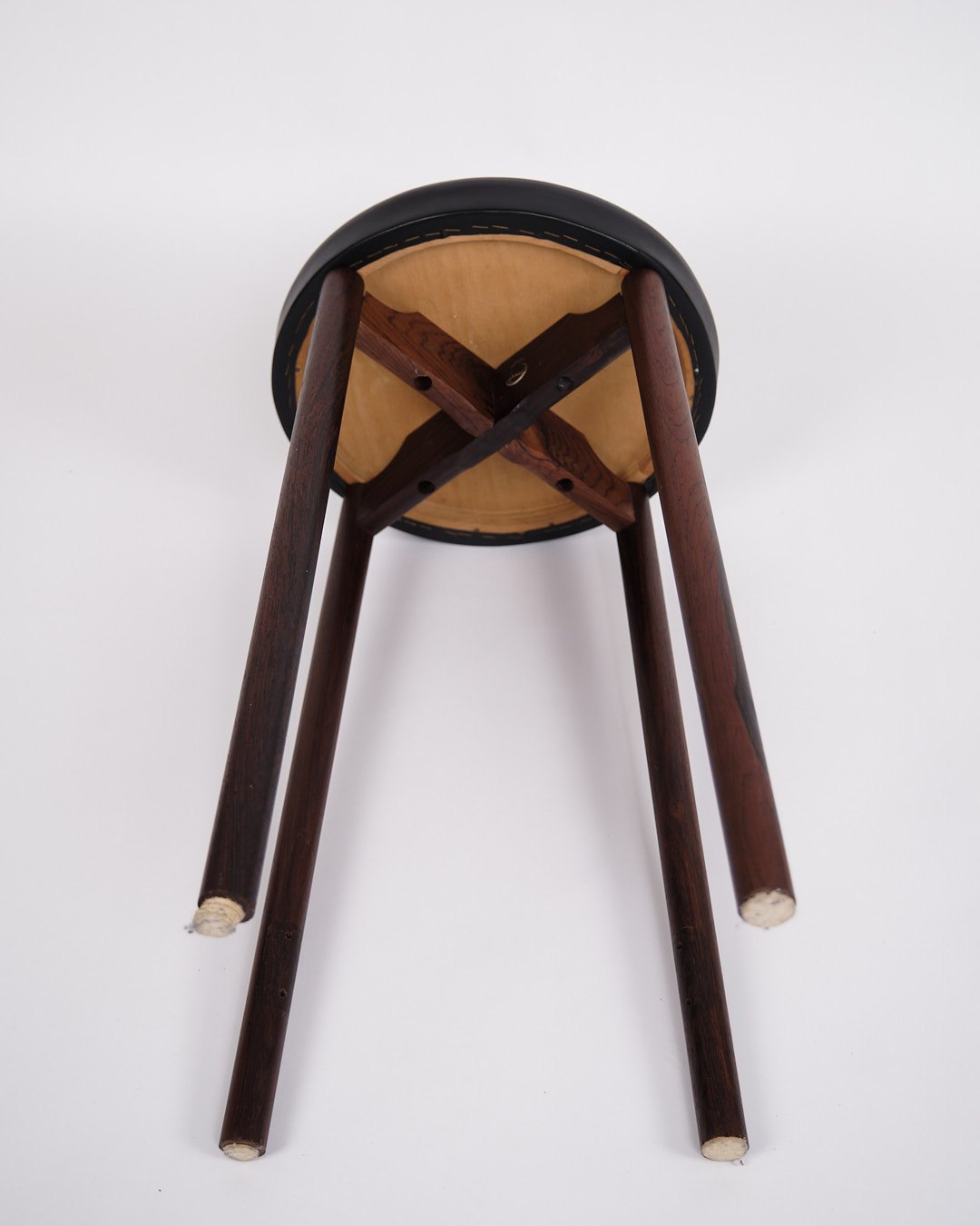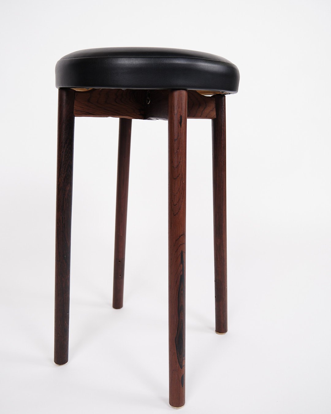Description: Danish bar stool from the 1970s. Rosewood with black leather seat. Classic Danish Design.