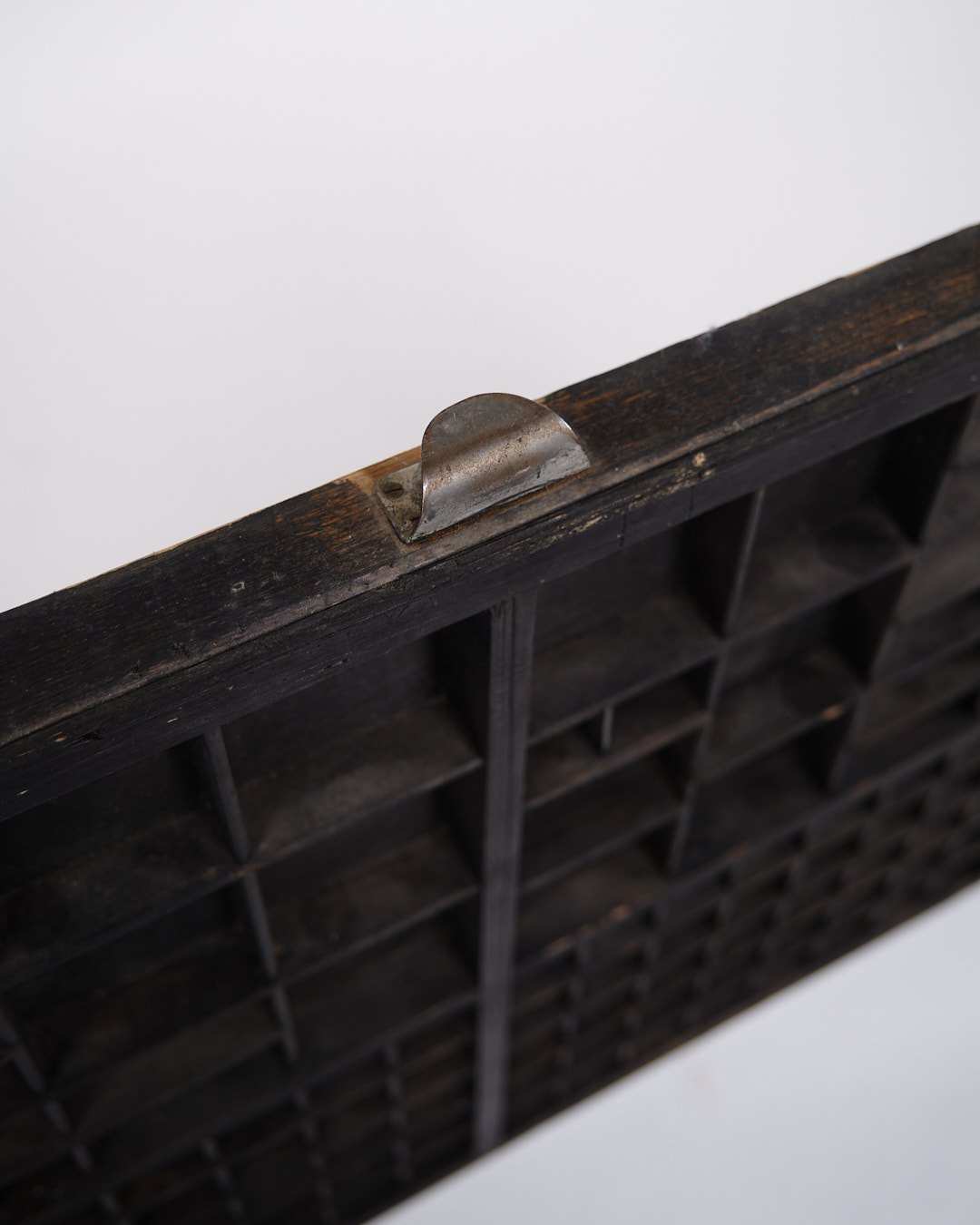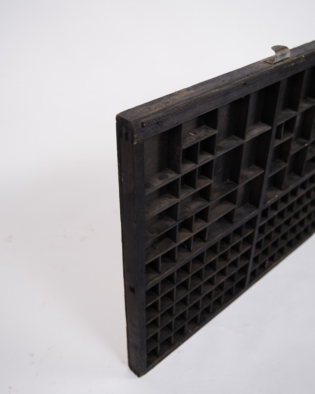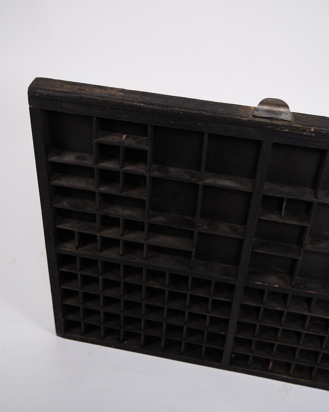 Beskrivelse: Gammel væghængt sættekasse fra 1930’erne. Sort bemalet træ med små rum.