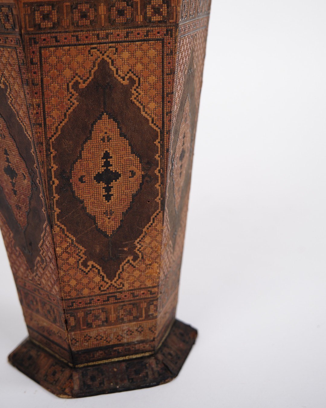 Vase - Mørkt Træ & Intarsia - Orientalsk Mønster - 1900-Tallet