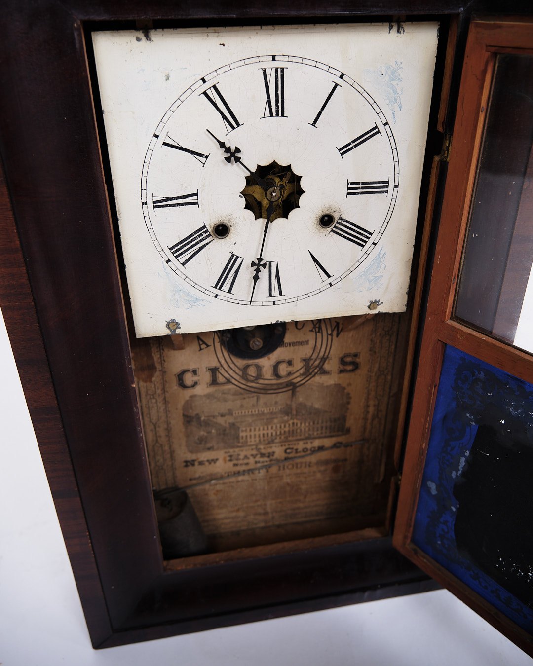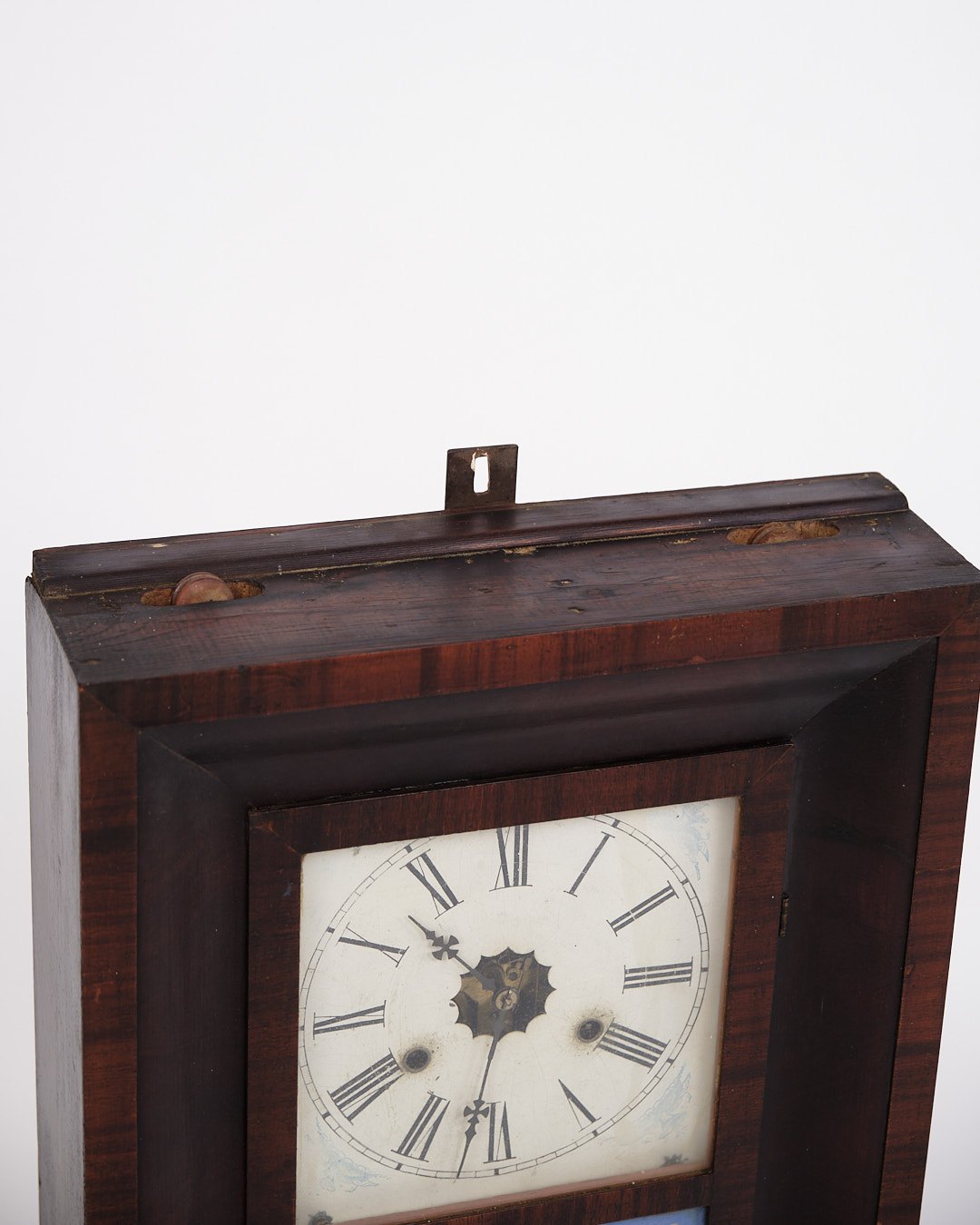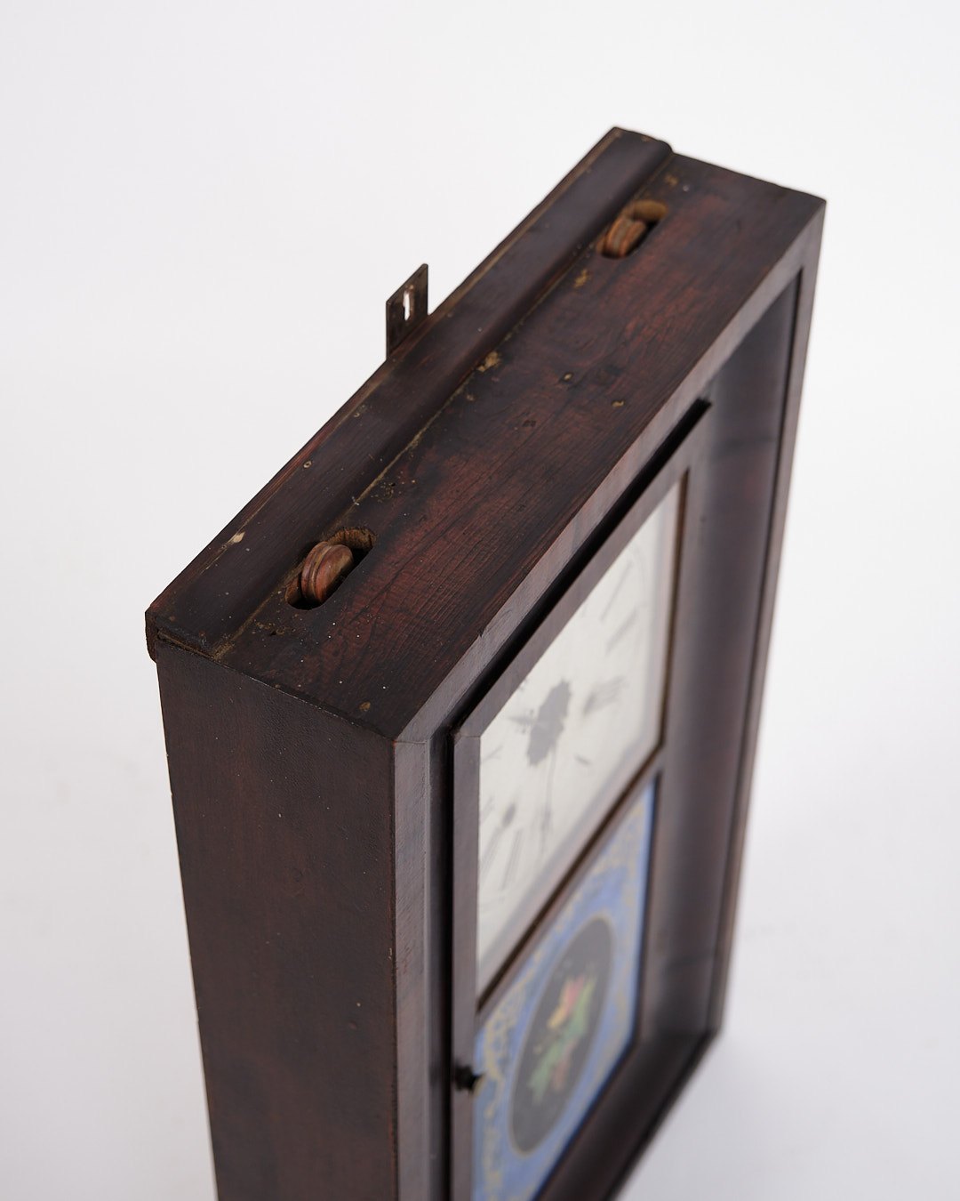 Antikt Amerikaner Ur - Bemalet Glasrude - Mørkt Træ - Romertal Urskive - 1800-Tallet