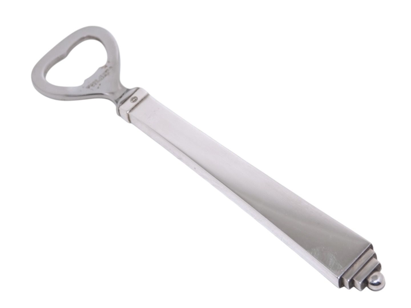 Description: Georg Jensen Pyramid sterling silver and stainless steel, long bottle opener.