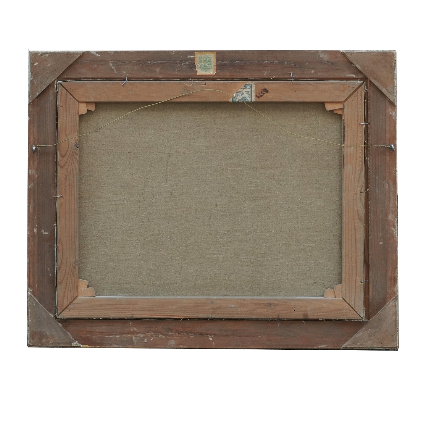 Ole Ring maleri. Ole Ring, 1902-72, olie på lærred. Vinterdag i snedækket landsby. Signeret og dateret 1963. Lysmål: 57x75cm. Med ramme: 76x94cm