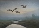 2 stk. olie malerier af Leif Ragn-Jensen "Moselandskab med Ryper" Olie på lærred. Begge i pæn guldramme. pris pr. stk.