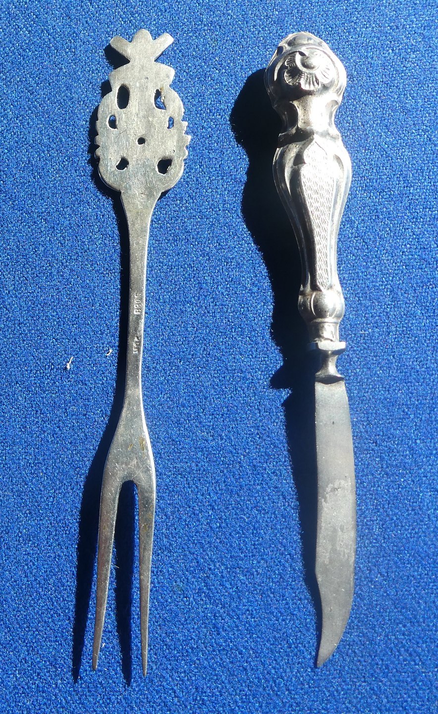 Fork 11.5cm in 830 silver and knife 10.5cm without stamps.