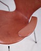 Description: Arne Jacobsen Seven-chair with armrests, model 3207. Cognac-colored leather and chrome frame. Fritz Hansen design classic.
