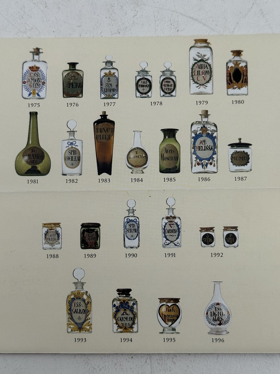 Beskrivelse: Holmegaard apotekerflaske fra 1988, Cranu Homin, Mål: 10x8,5x8,5cm, flaskerne er mundblæste kopier af originale gamle apotekerflasker, Signeret Hg88.