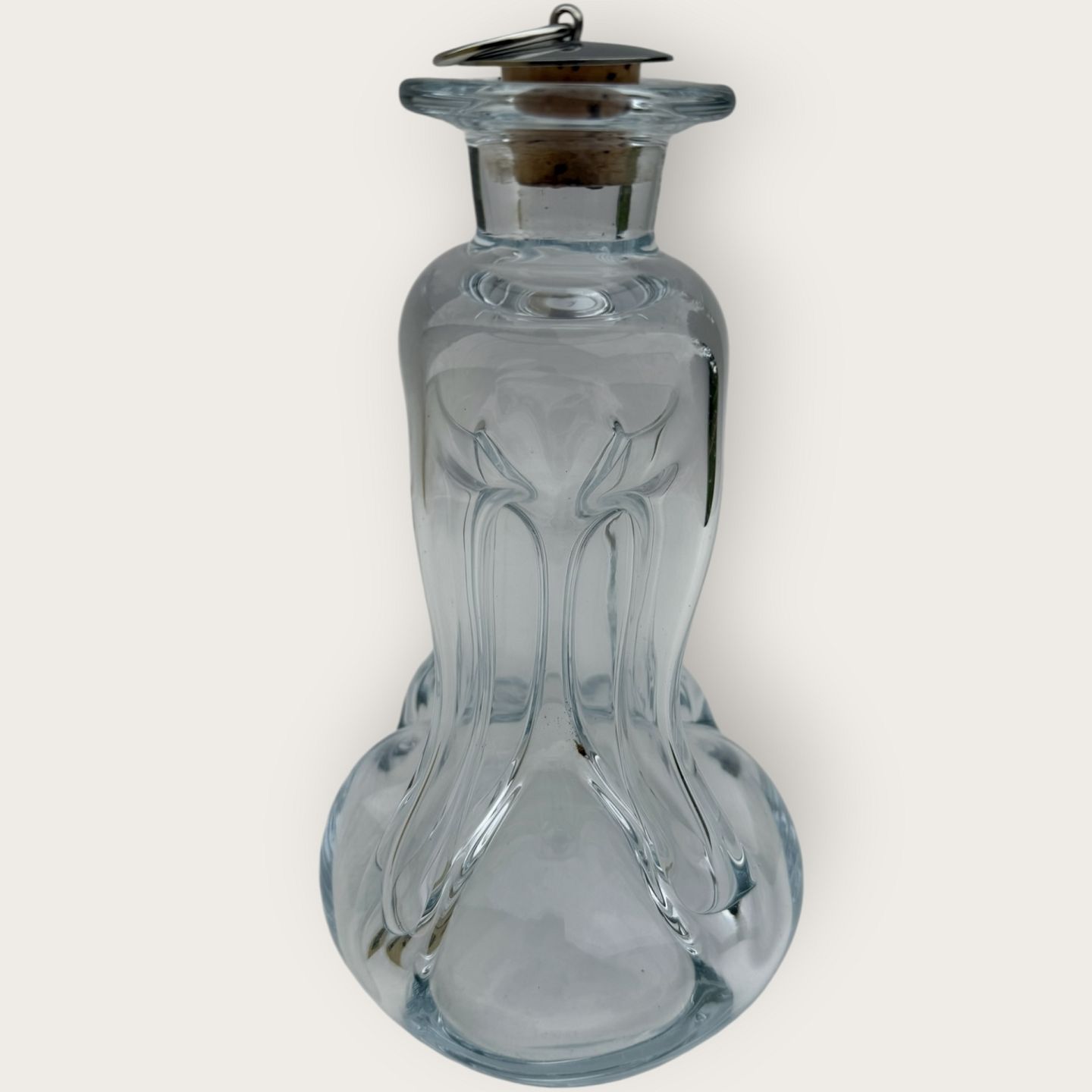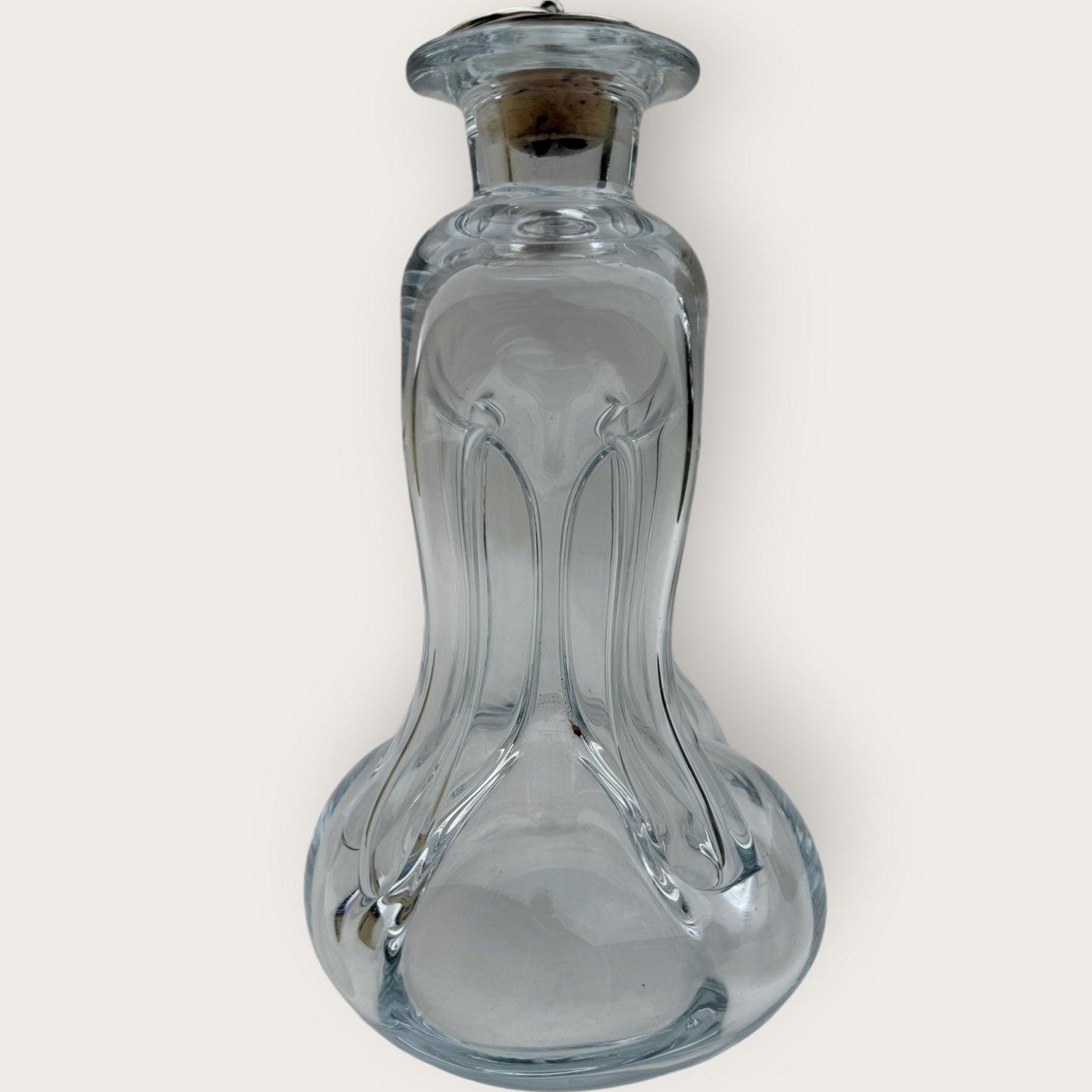 : Holmegaard, klukflaske som er bred forneden, 20 x 11,5cm, fin stand