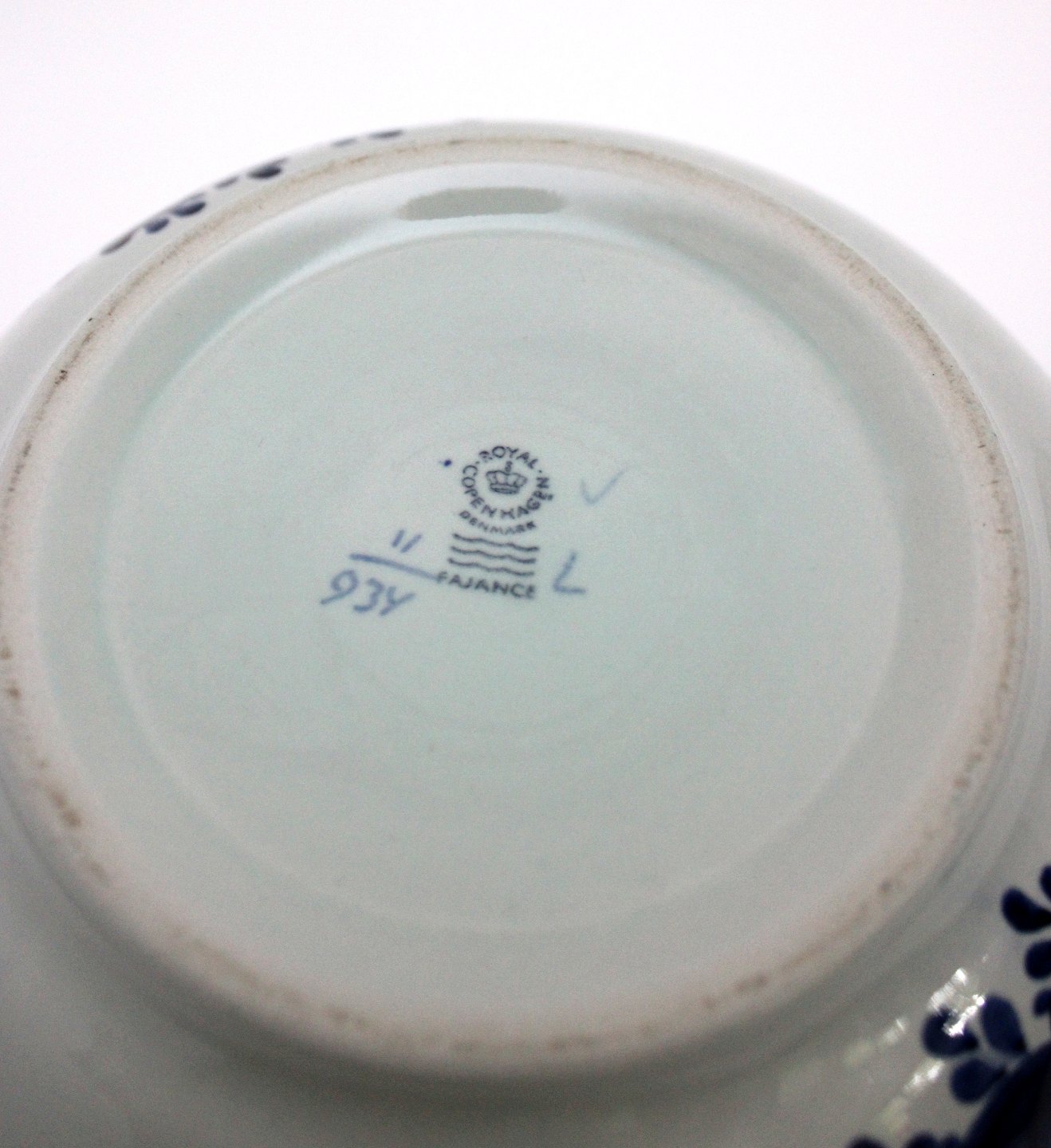 Beskrivelse: Royal Copenhagen, Tranquebar lyseblå fajance med mørkeblå tulipan og flettet bort designet af Christian Joachim. Håndmalet.