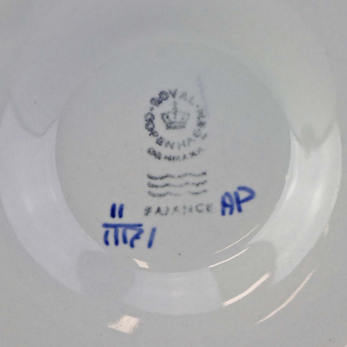 Glat Lyst fajance med blå dekoration af blomster og blå bort.
