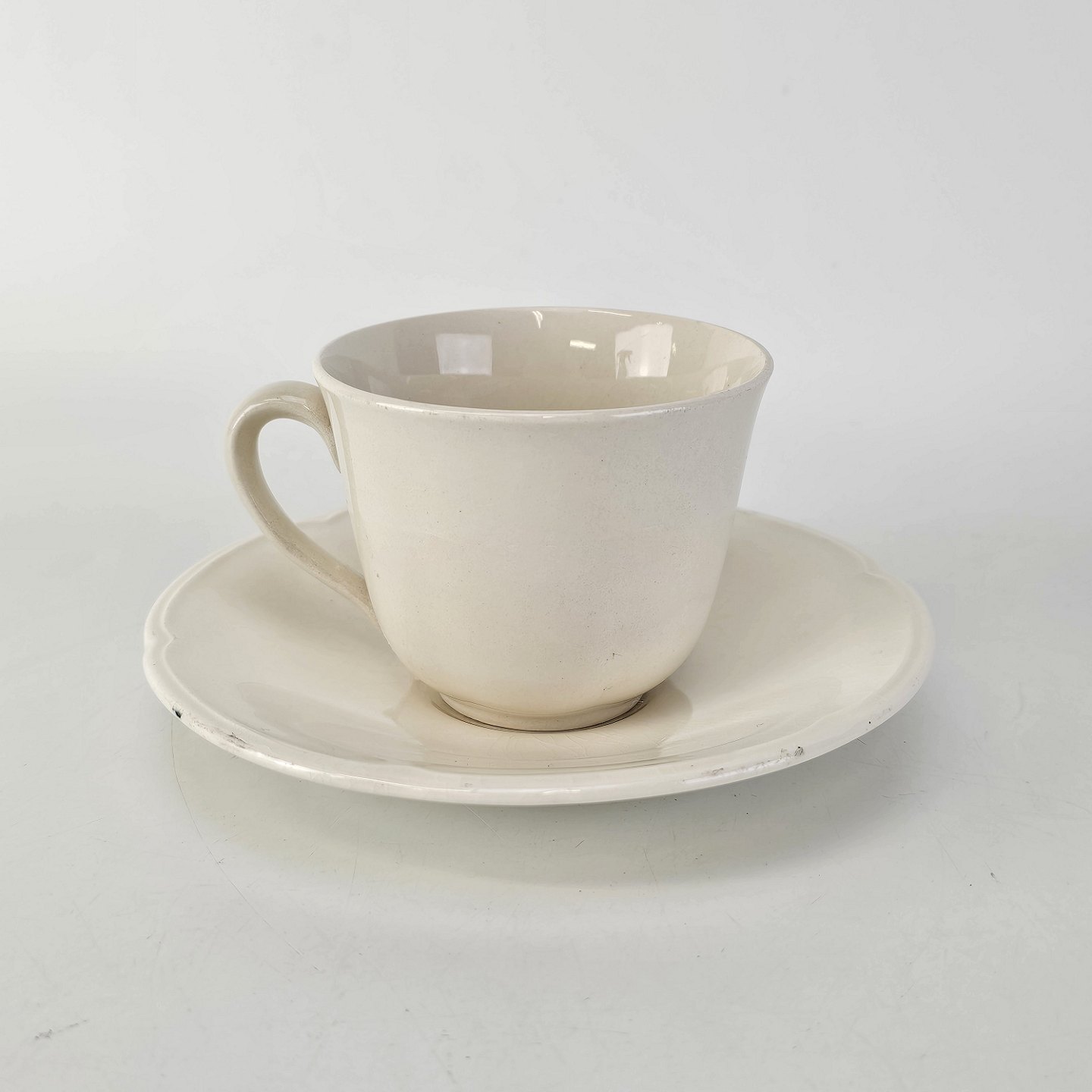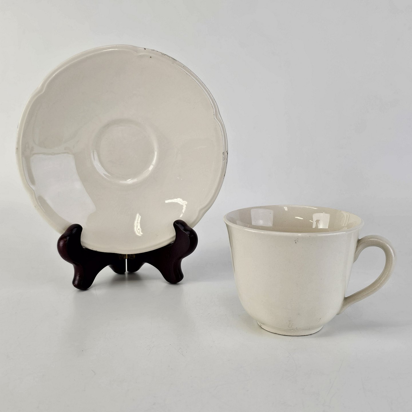 Beskrivelse: Kop og underkop i cremefarvet fajance fra stellet Alma