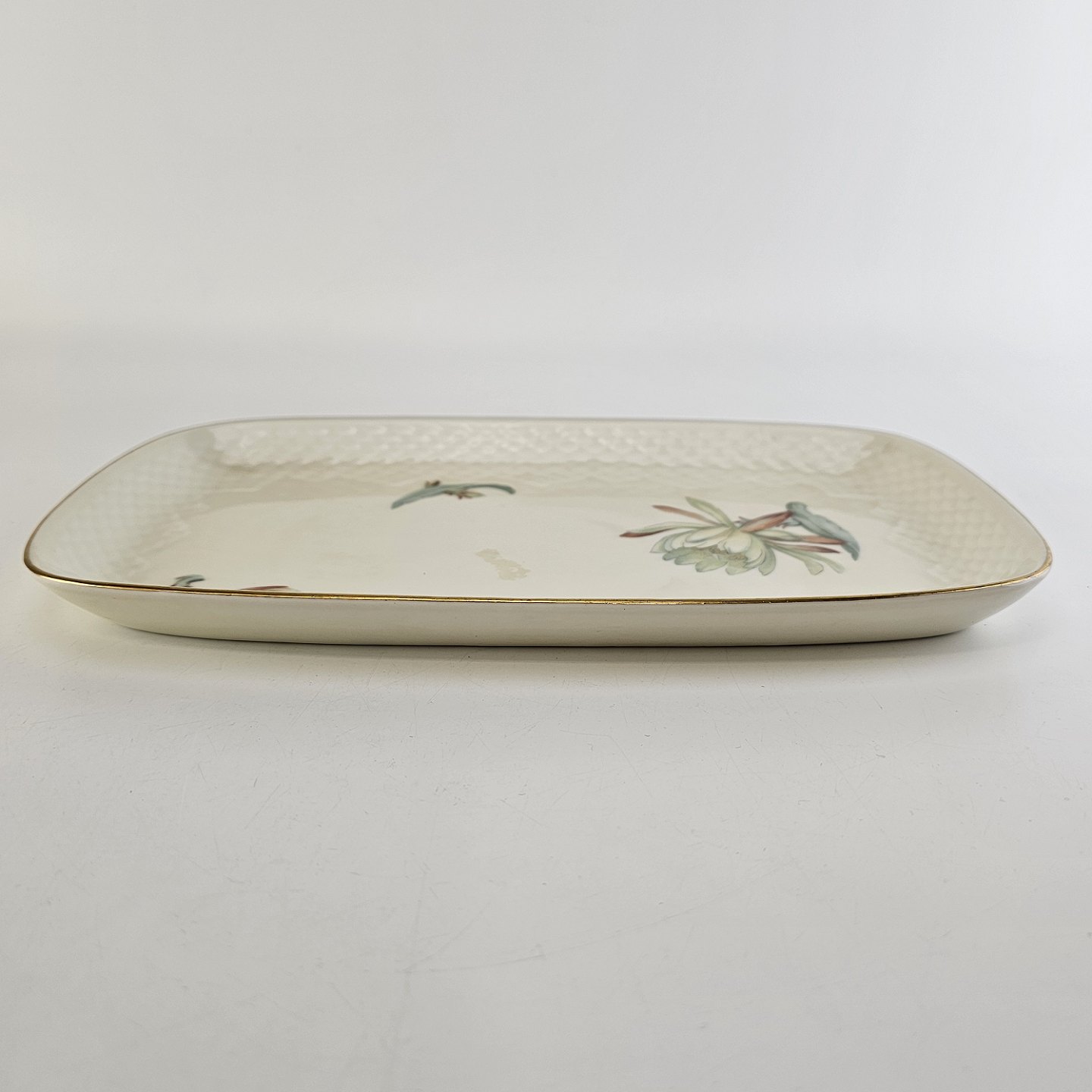 Beskrivelse: Rektangulært fad i porcelæn fra stellet Kaktus