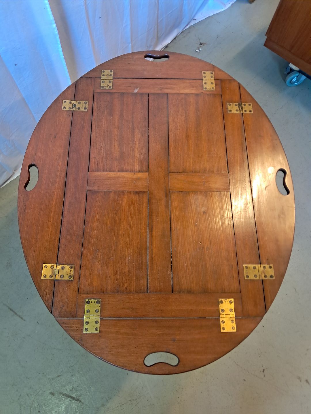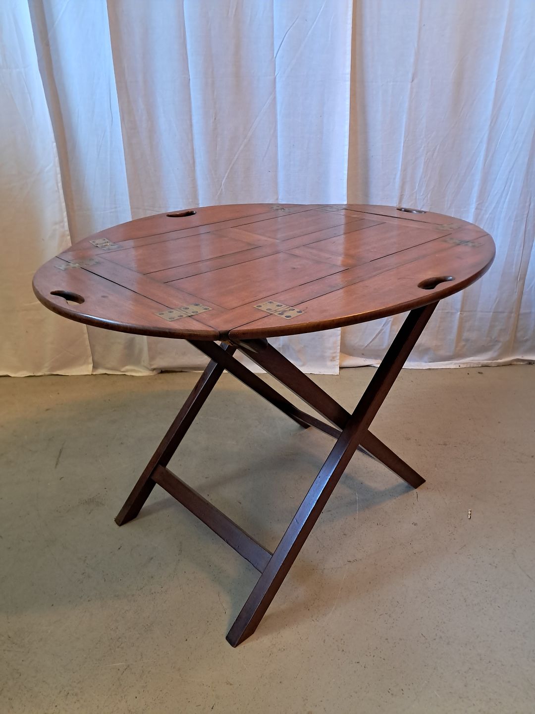 Beskrivelse: Butlers tray i massivt mahogni, fra 1980erne.