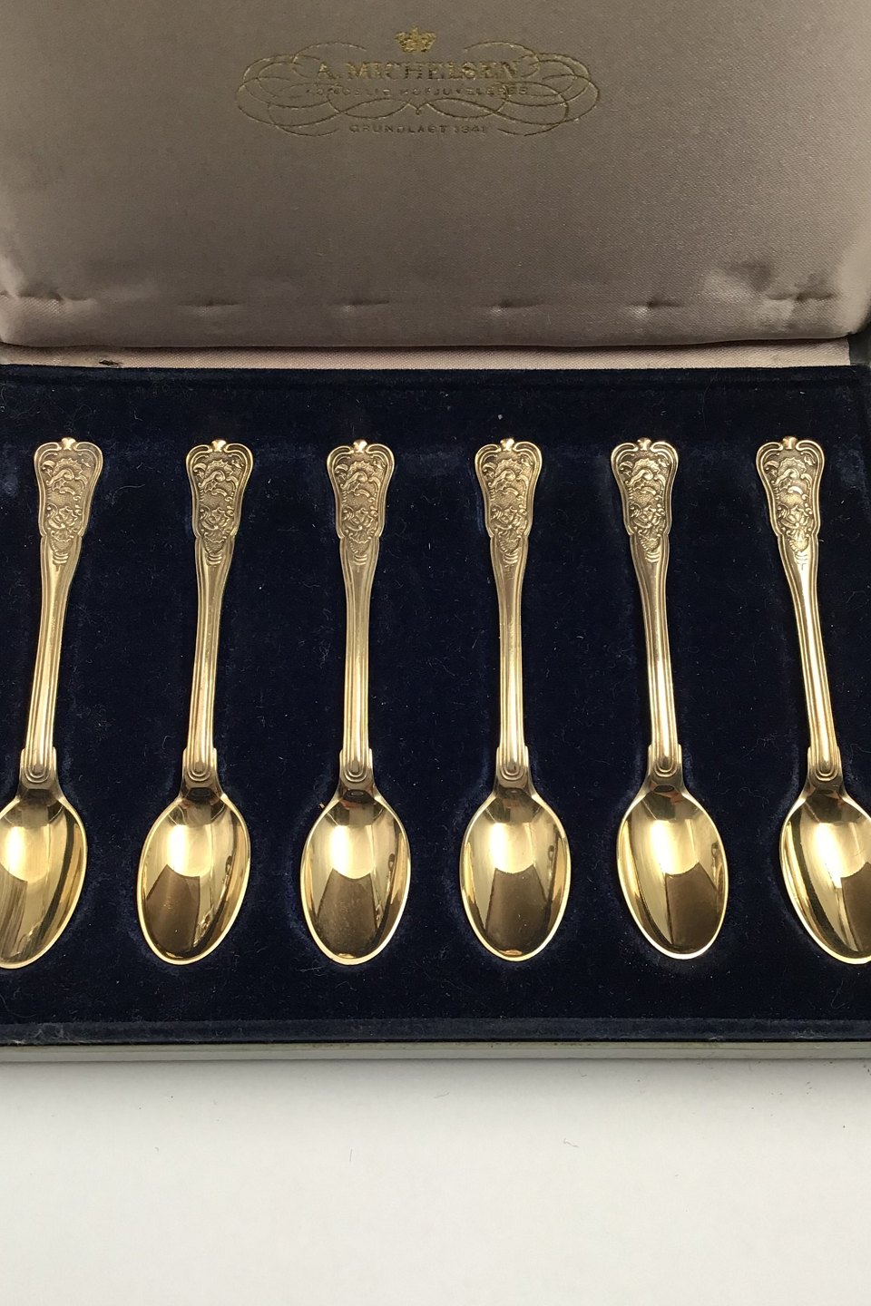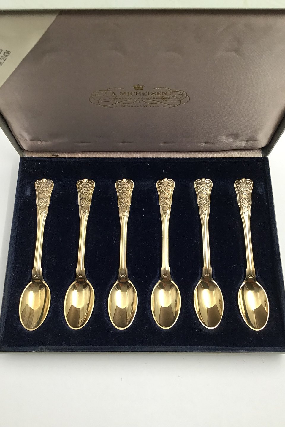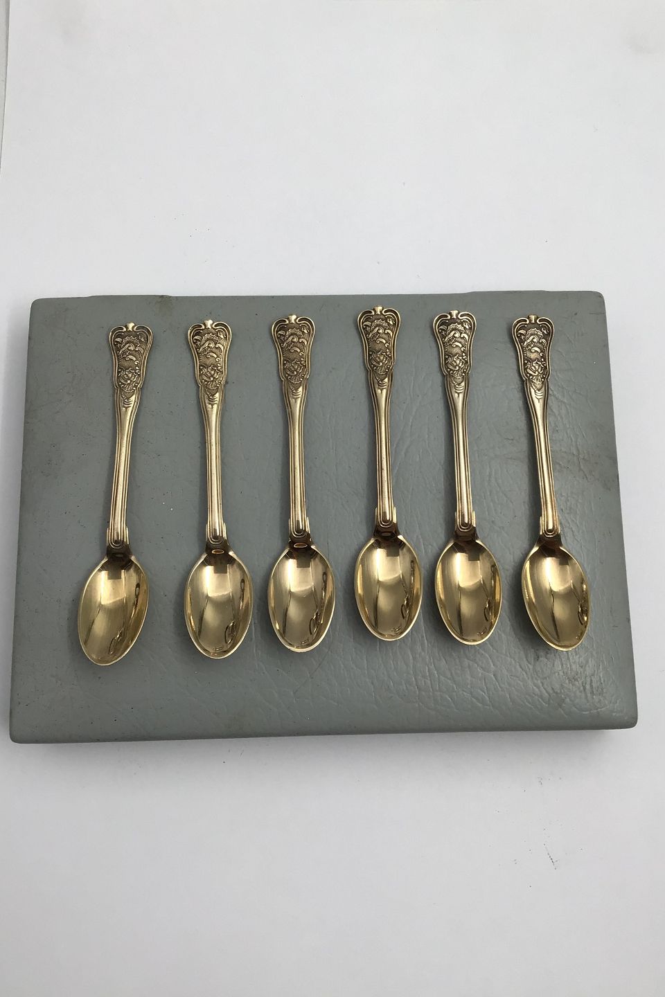 Beskrivelse: Anton Michelsen Sterling Sølv Rosenborg Moccaske Sæt (6) Forgyldt