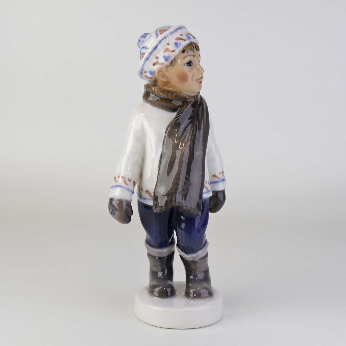 Beskrivelse: Figur i porcelæn med titlen dreng med halstørklæde. Nr. 1064