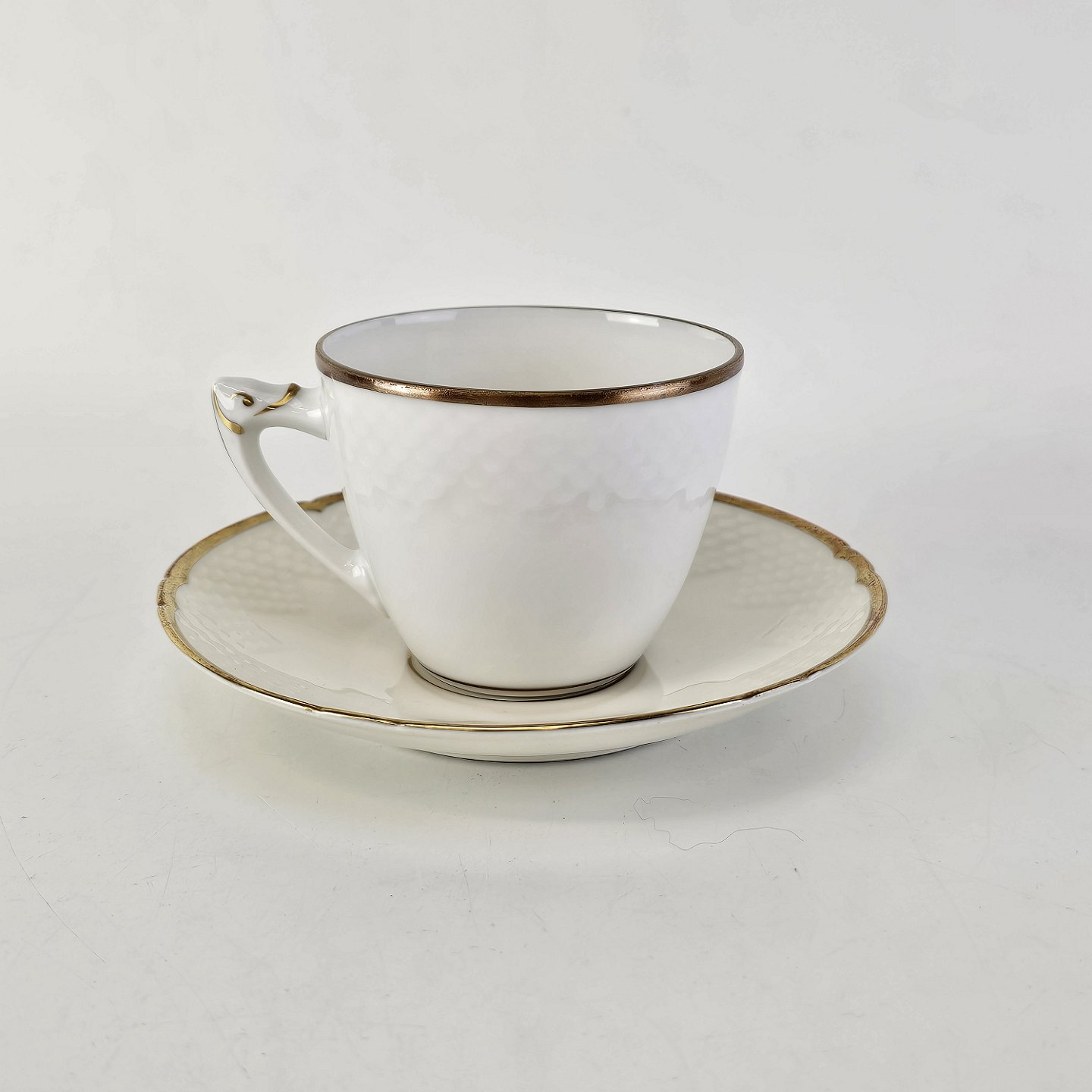 Beskrivelse: Kop og underkop i porcelæn fra stellet Hostrup