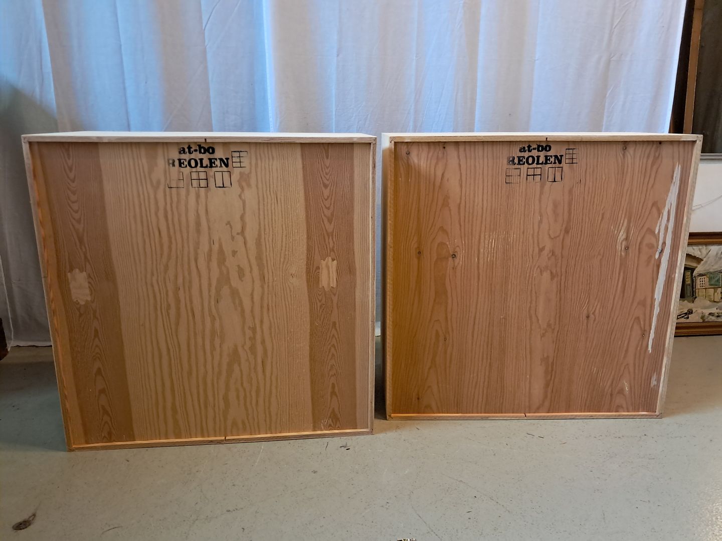 Beskrivelse: 2 At-Bo reolkasser i krydsfiner, fra 2000erne.
