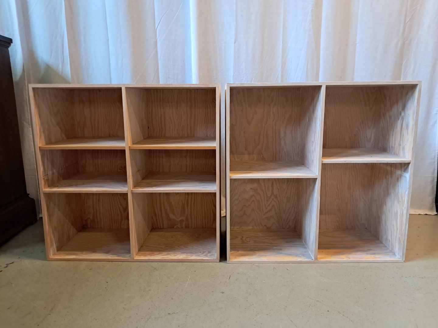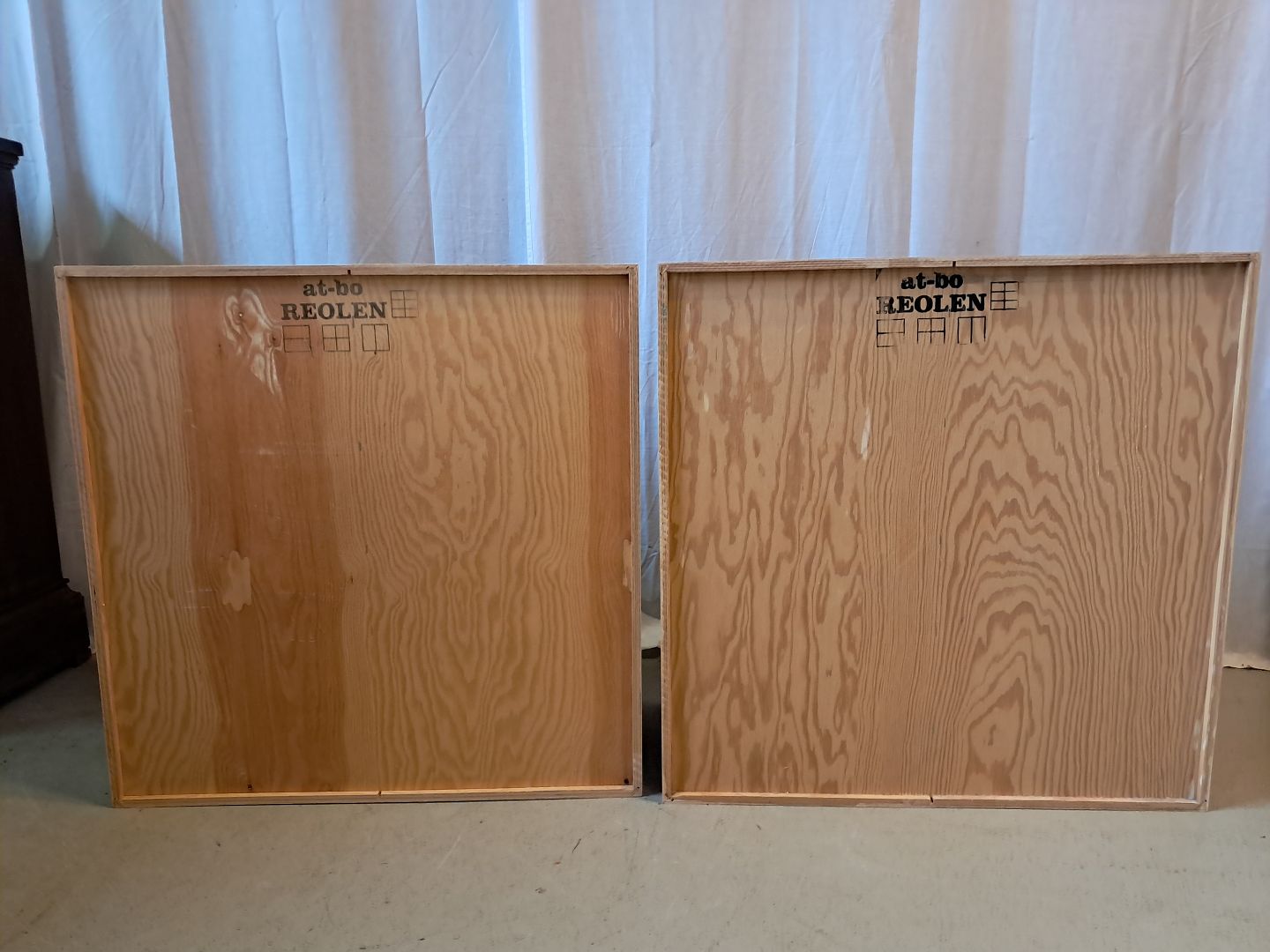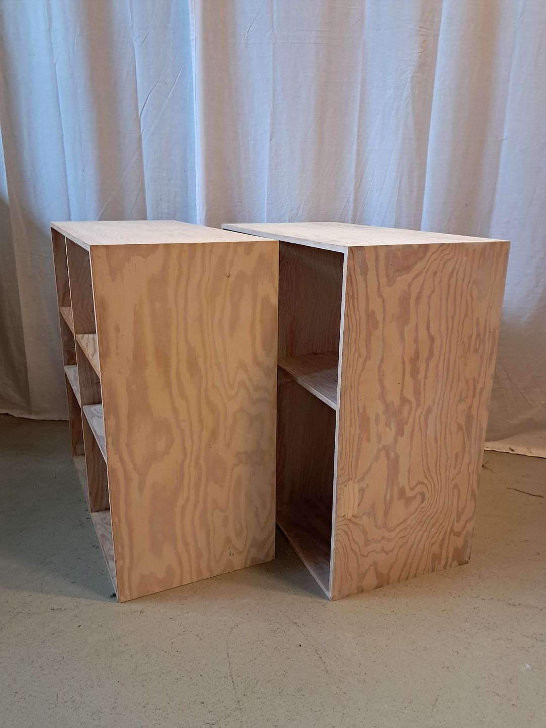 Beskrivelse: 2 At-Bo reolkasser i krydsfiner, fra 2000erne.