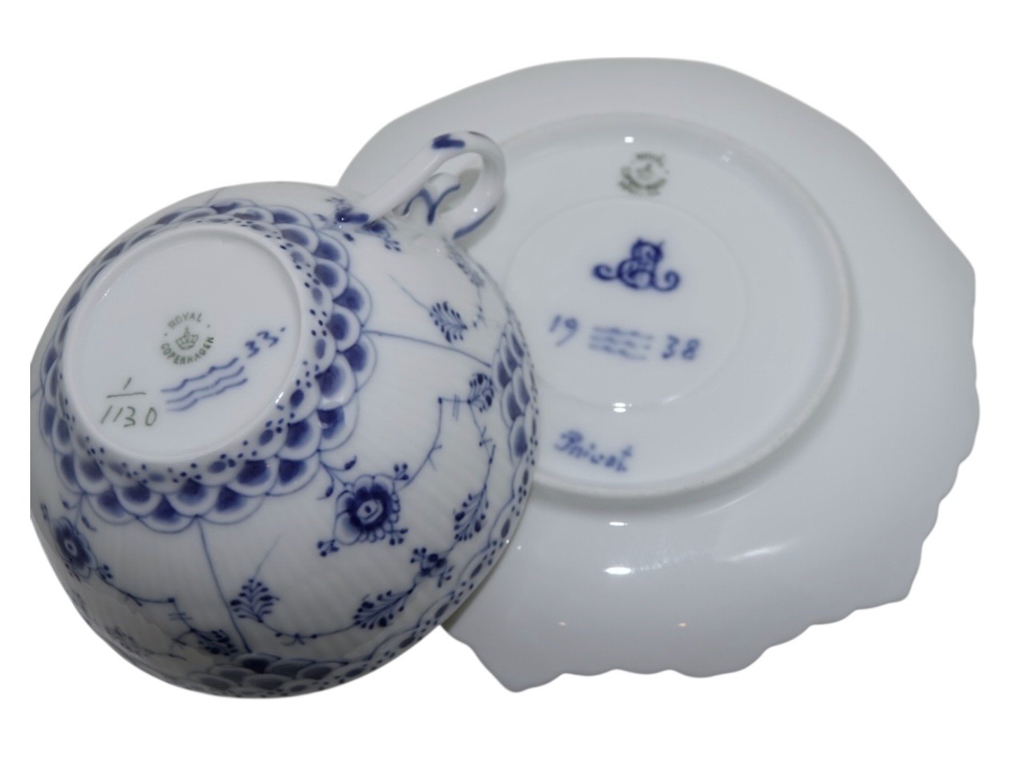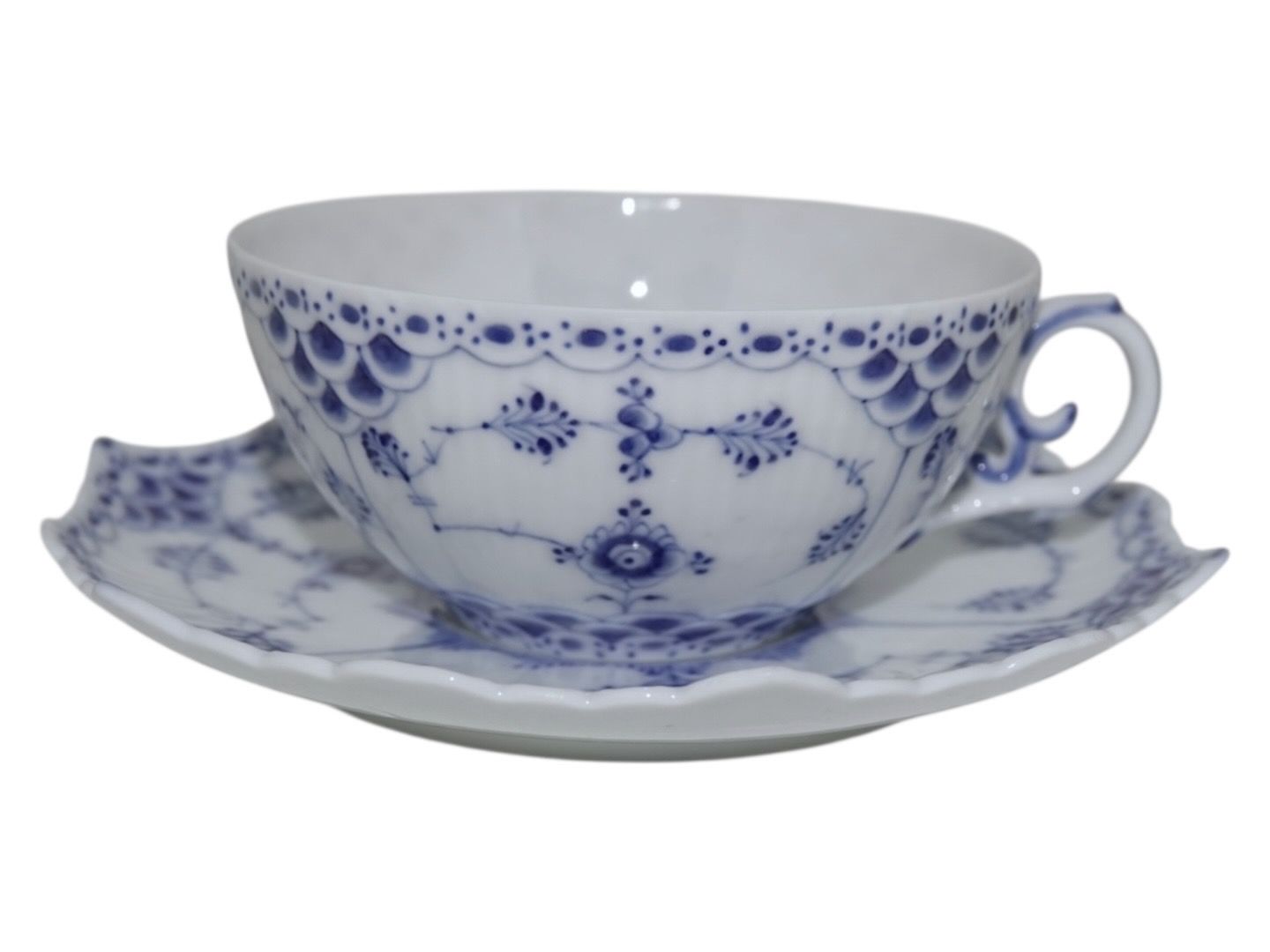 Description: Royal Copenhagen Blue Fluted Full Lace, tea cup with matching saucer.