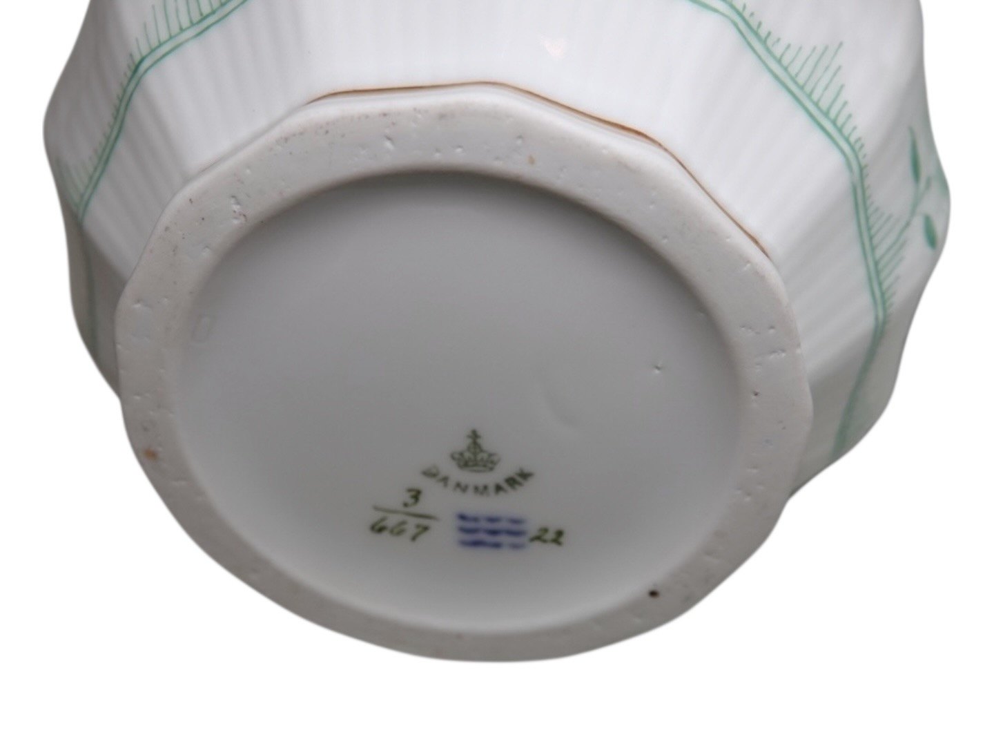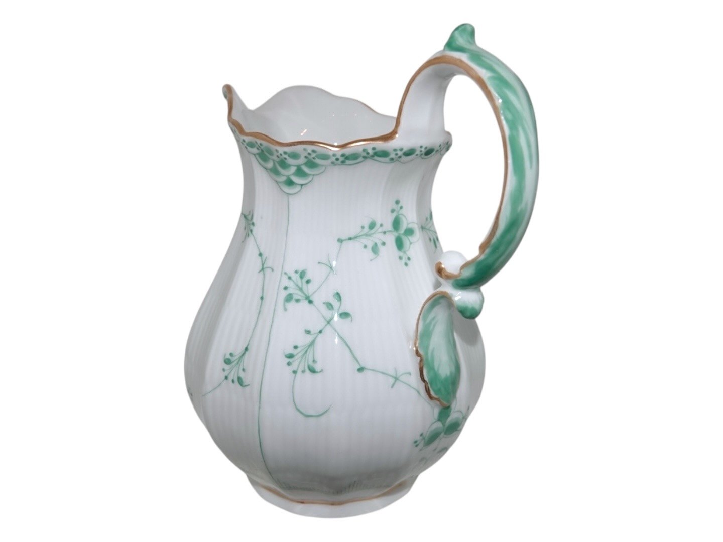 Description: Royal Copenhagen Green Fluted Half Lace with gold trim, milk pitcher.