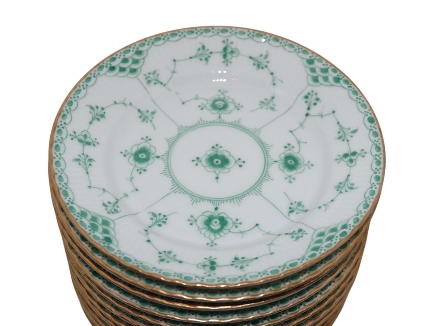 Beskrivelse: Royal Copenhagen Grøn Musselmalet Halvblonde med guldkant, kagetallerken.