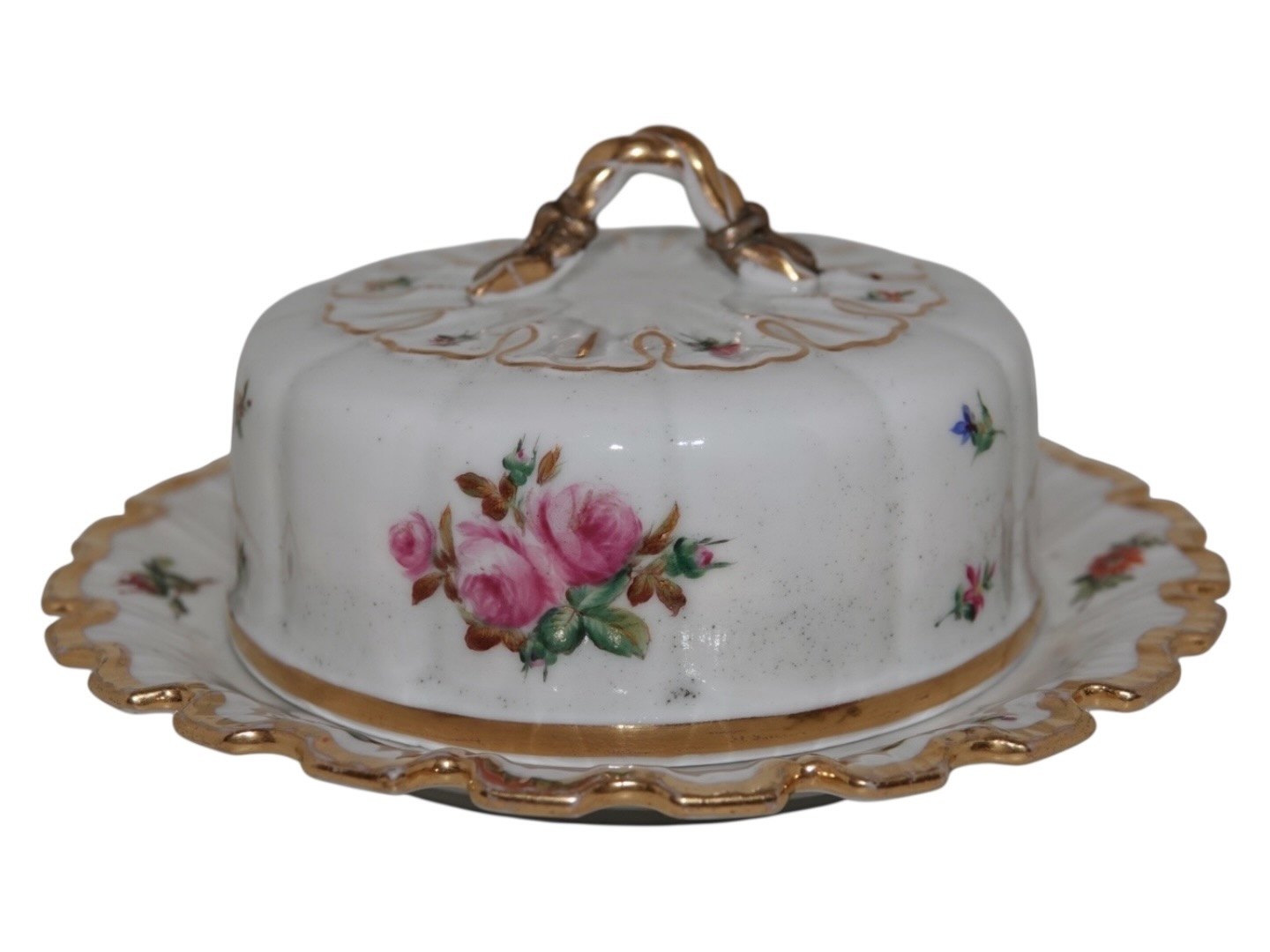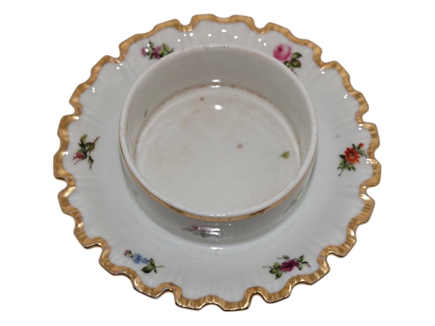 Beskrivelse: Royal Copenhagen Saksisk Blomst, sjælden smørskål på fast underfad.