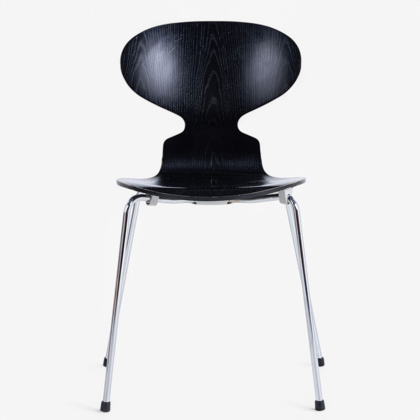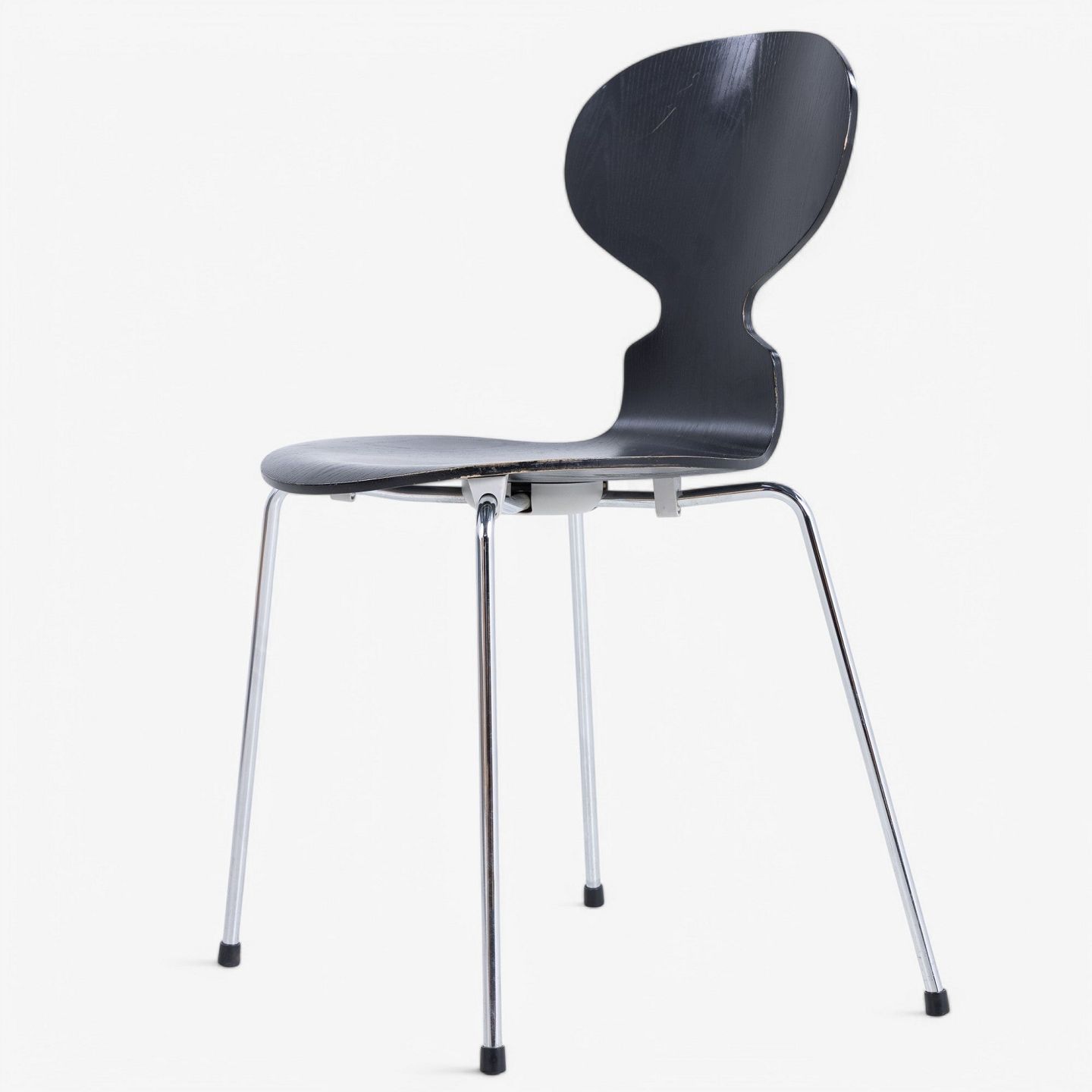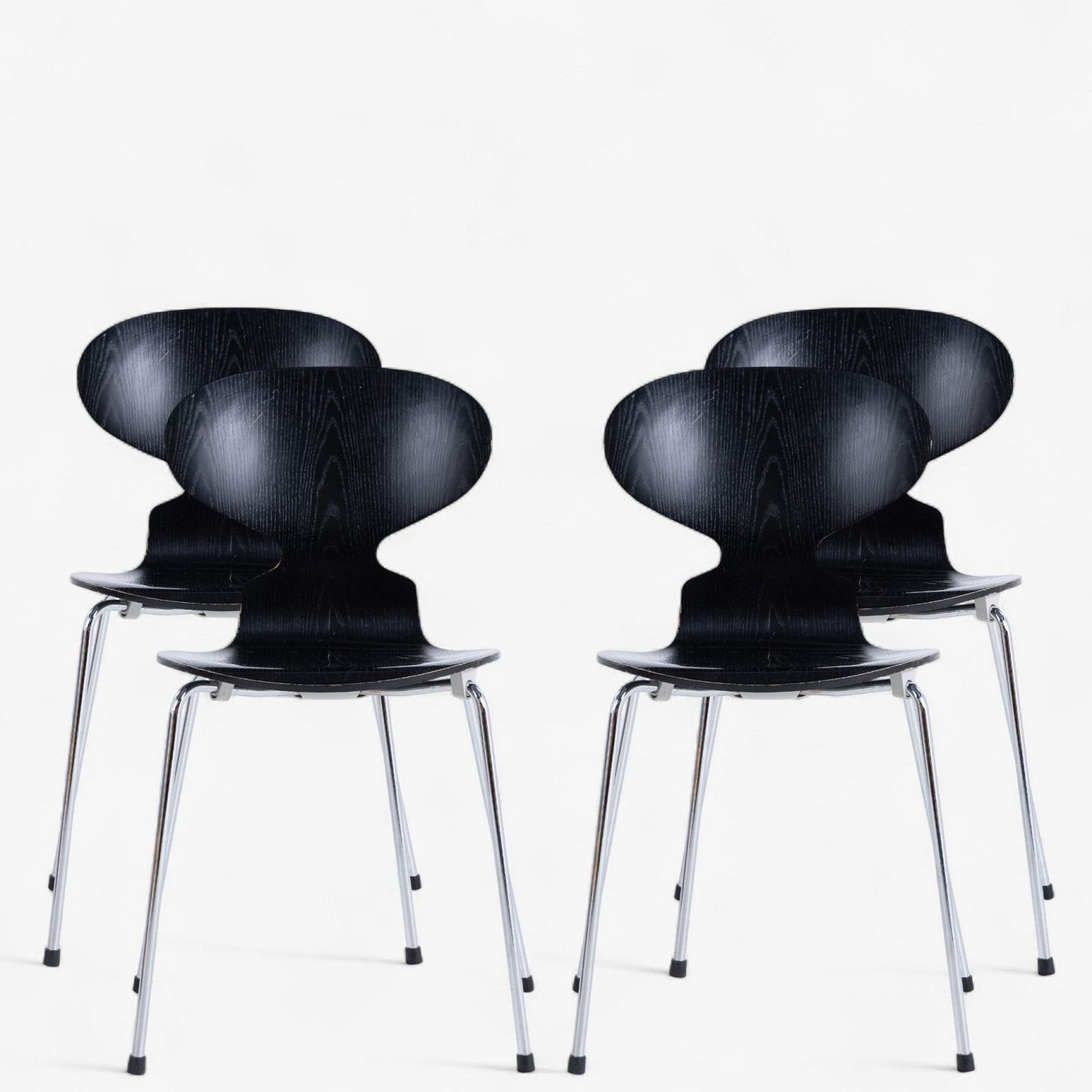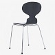 AJ 3100 - Set of 4 black-glazed Ant chairs with steel frame.